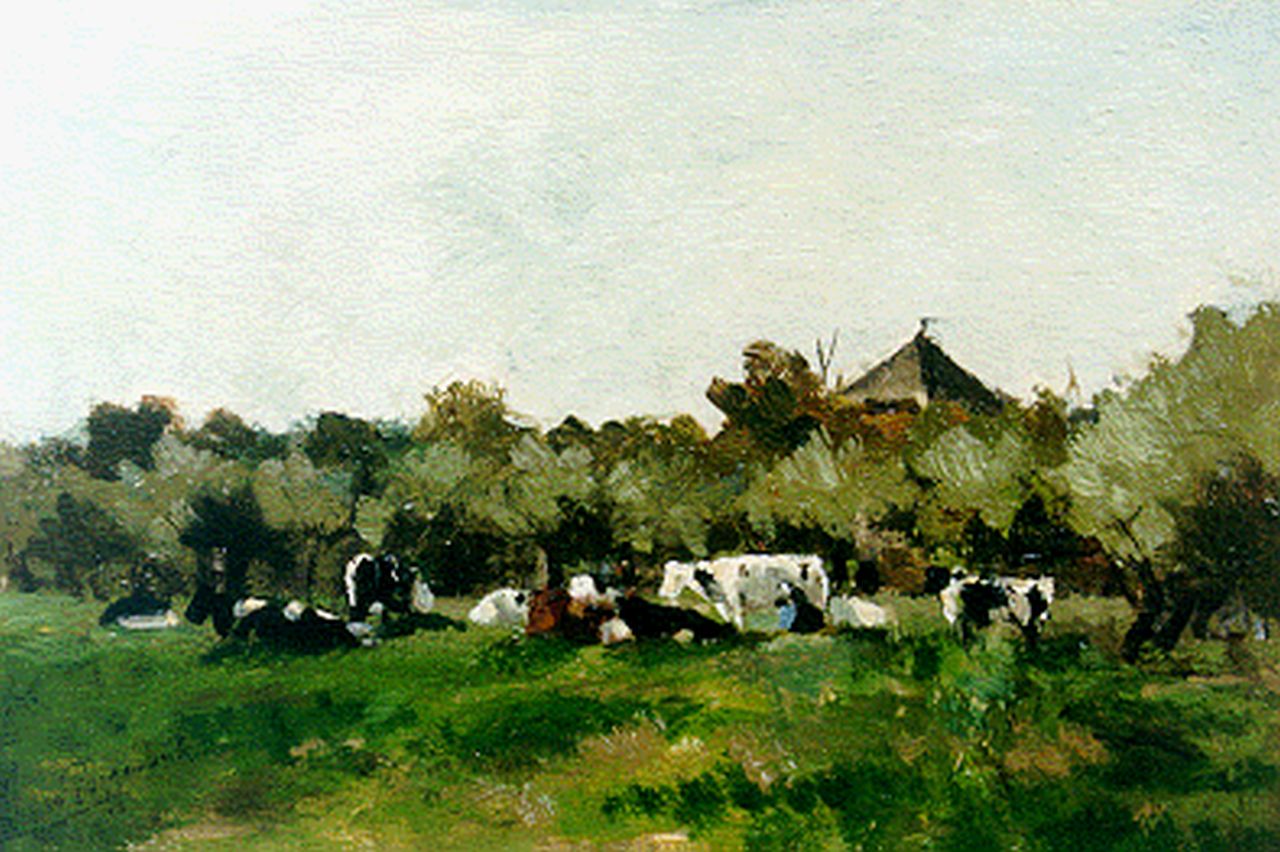 Geo Poggenbeek Kunstwerk • Gemälde • zuvor zu verkaufen Milking the cows