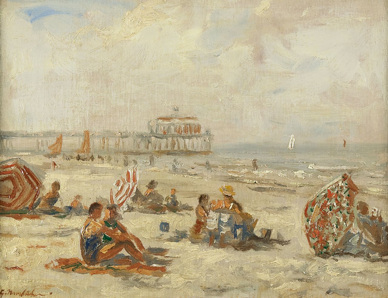 Georg Hambüchen Kunstwerk • Gemälde • zuvor zu verkaufen Summer on the beach in Scheveningen