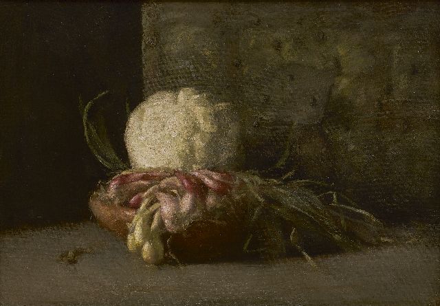 Georg Rueter erhielt seine Ausbildung an der Rijksacademie in Amsterdam, unter anderem ab August Allebé. Er zeichnete und malte Porträts und Blumenstillleben und war zu Beginn dieses Jahrhunderts einer der führenden Maler unseres Landes, darunter Breitner, Gestel, Maks und Sluijters. Rueter arbeitete auch als Glasmaler, bekannt für seine Fenster der Nieuwe Kerk in Delft und der Pieterskerk in Leiden. Er entwarf auch Exlibris, Briefmarken und Buchumschläge.