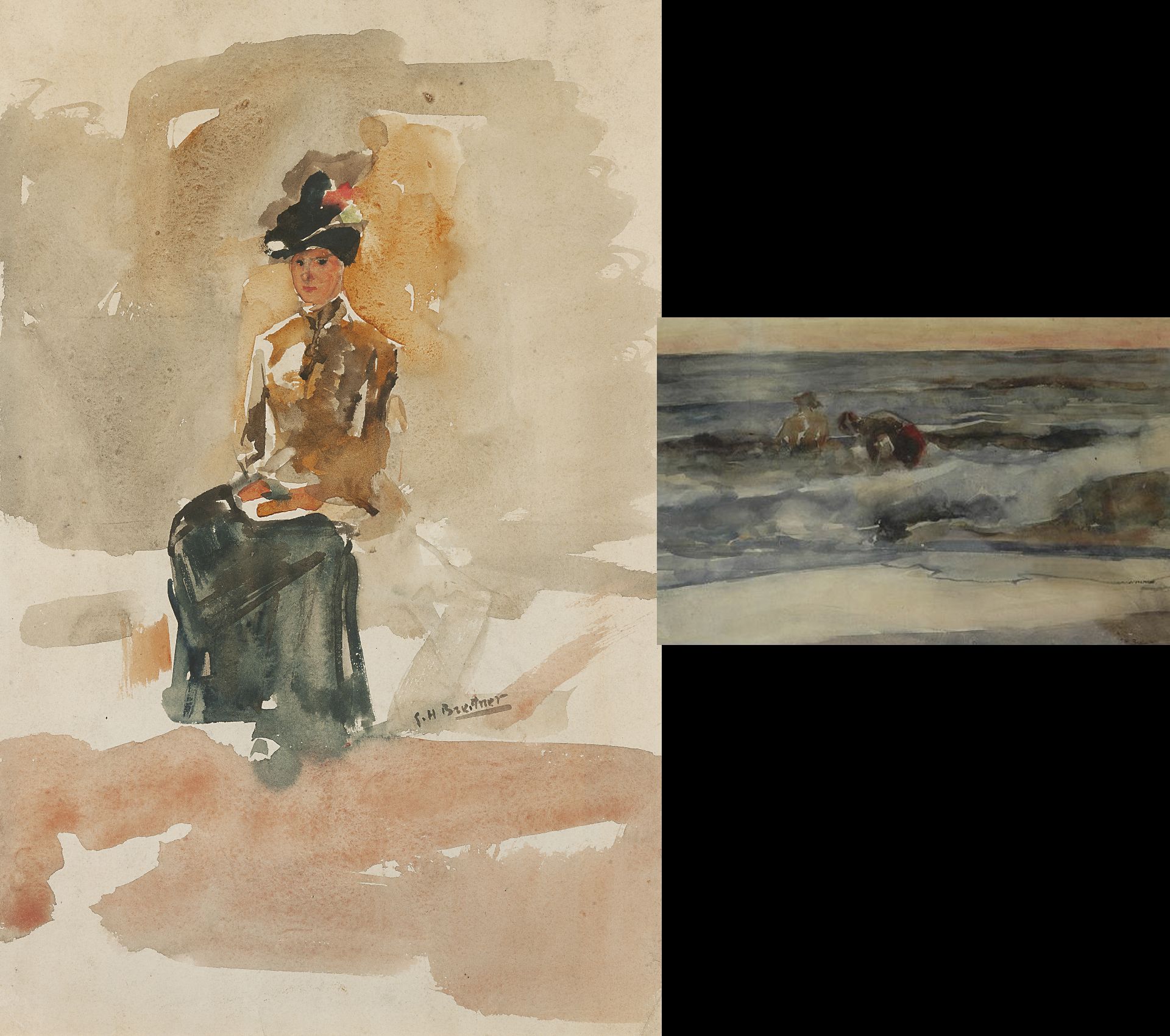 George Hendrik Breitner Kunstwerk • Aquarell • Zeichnung • zuvor zu verkaufen An elegant woman, seated; verso: two figures boys in the breakers