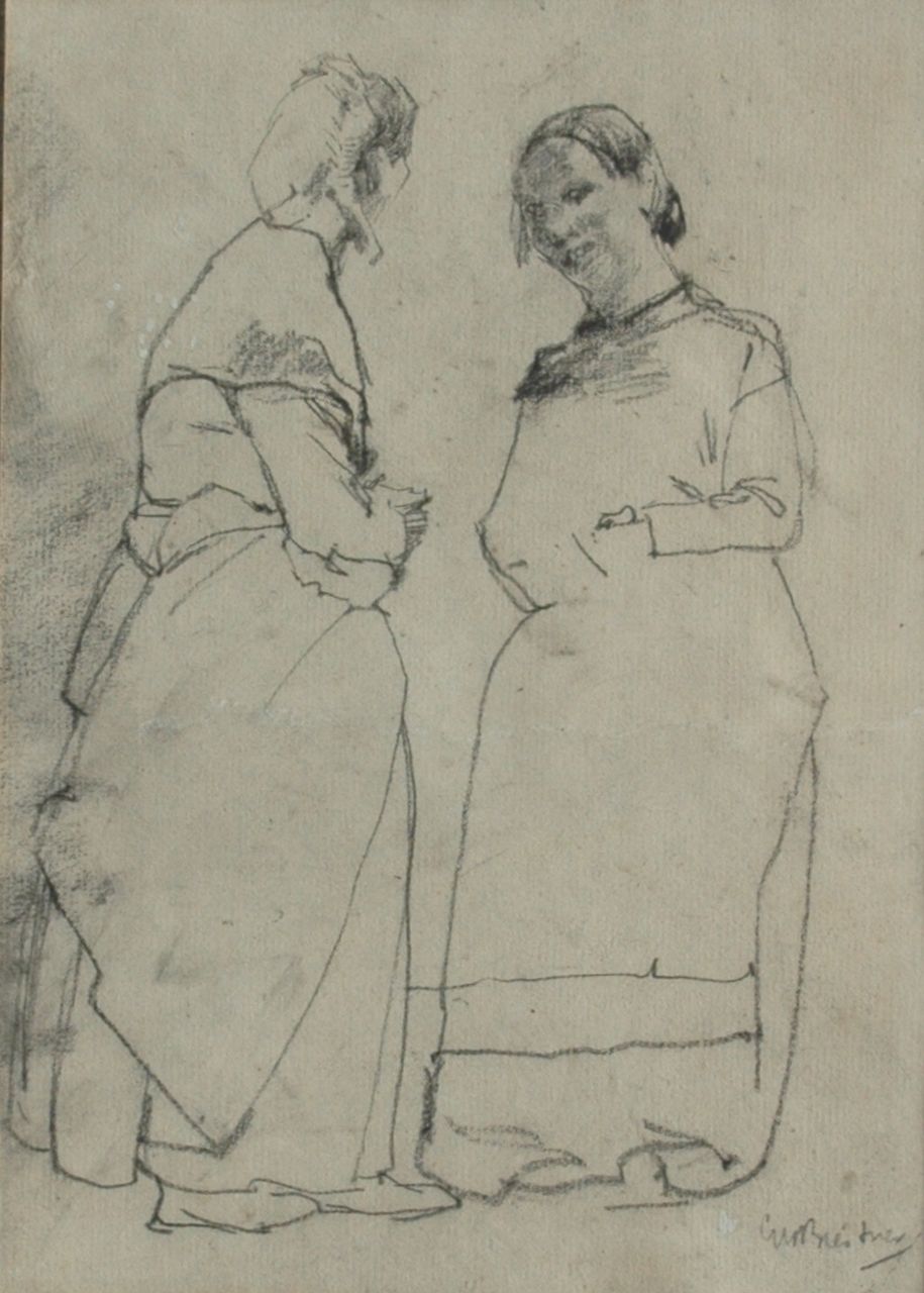 George Hendrik Breitner Kunstwerk • Aquarell • Zeichnung • zuvor zu verkaufen Two servants busy talking