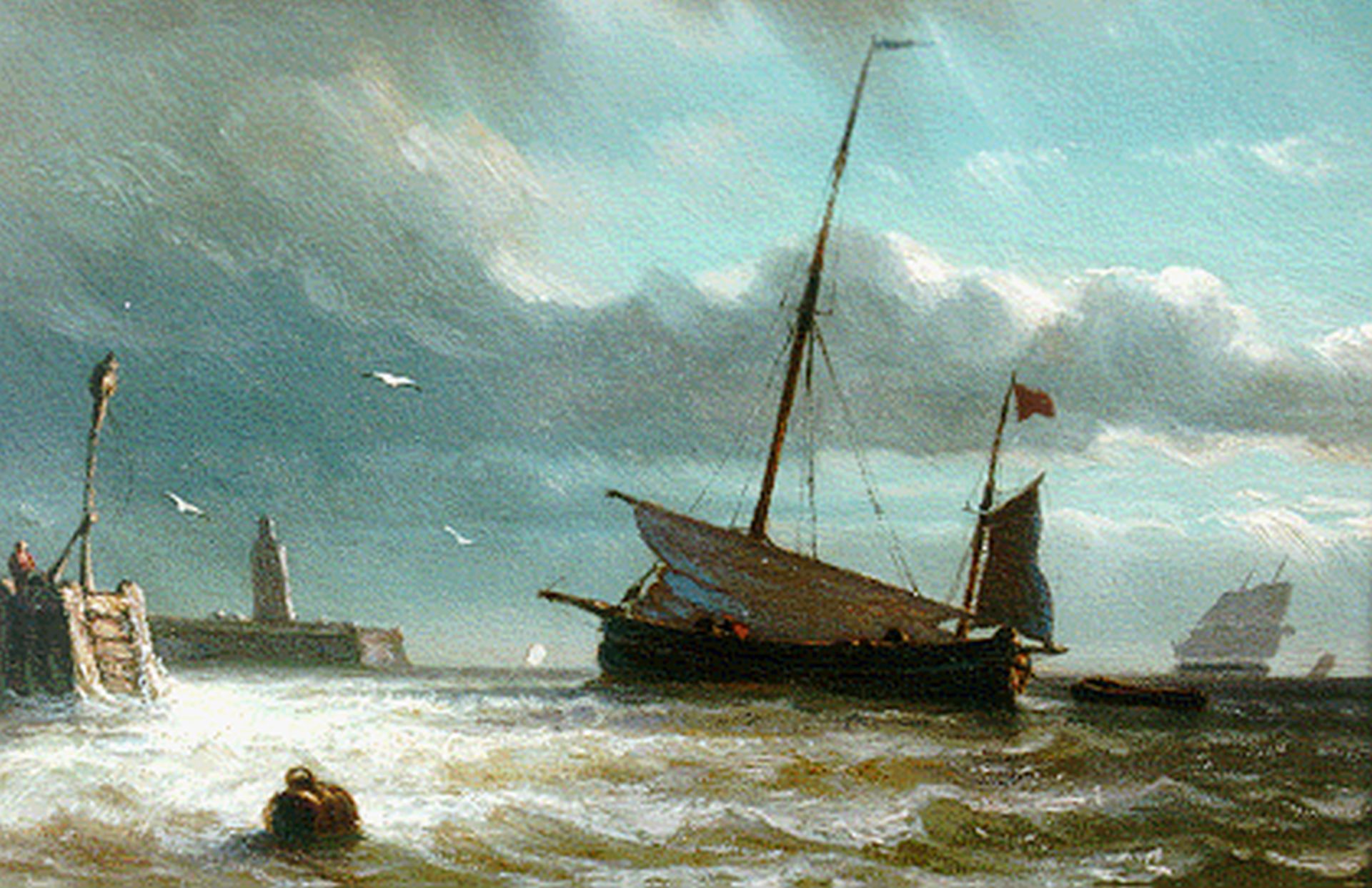 George Johannes Hoffmann Kunstwerk • Gemälde • zuvor zu verkaufen A sailing vessel lowering sail