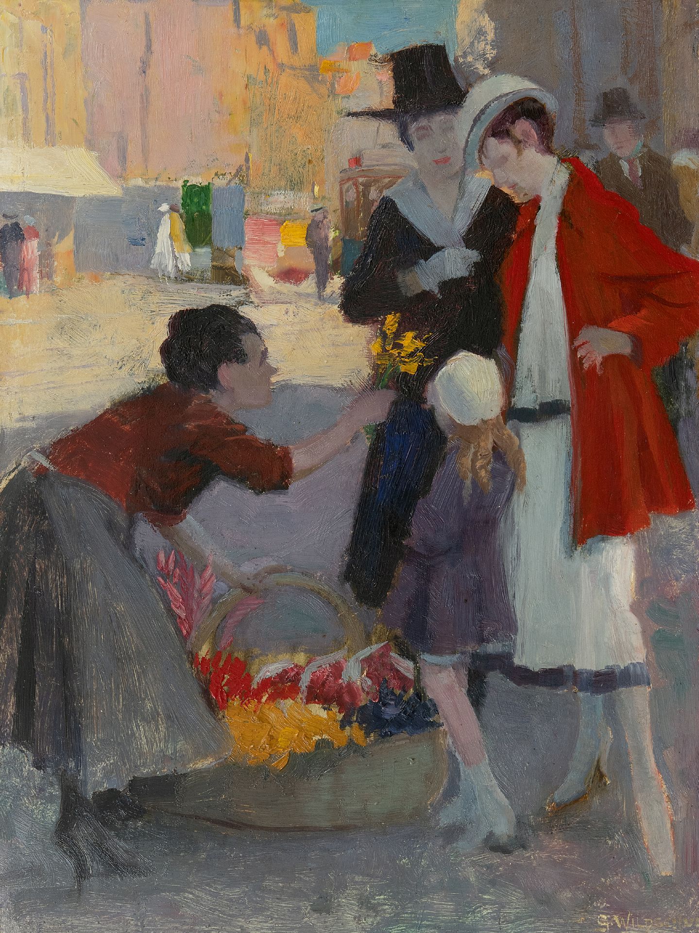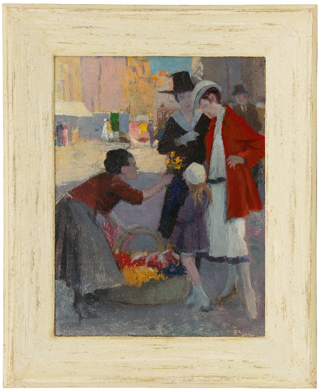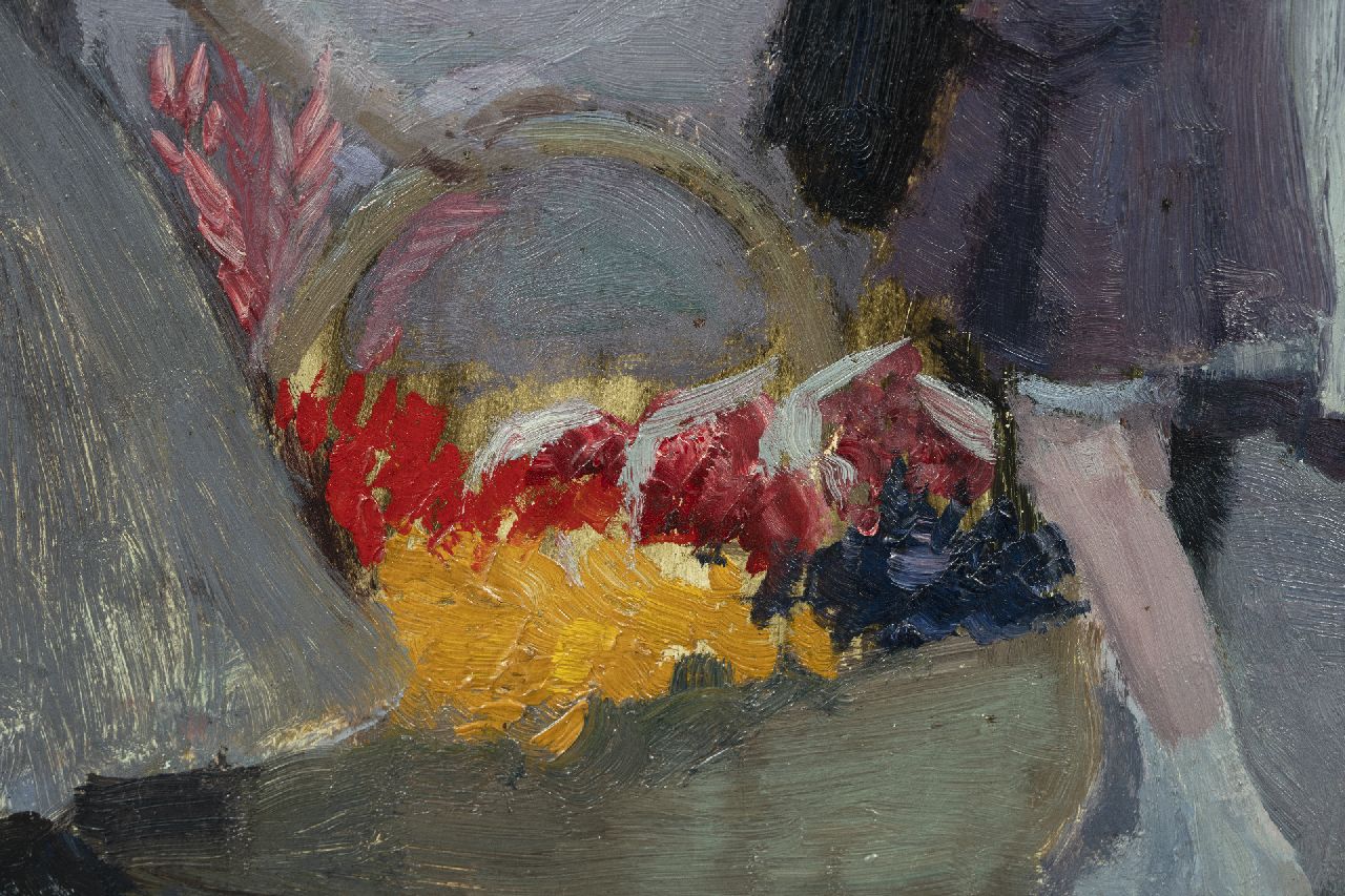 George Wildschut Kunstwerk • Gemälde • zuvor zu verkaufen Beim Blumenverkäuferin