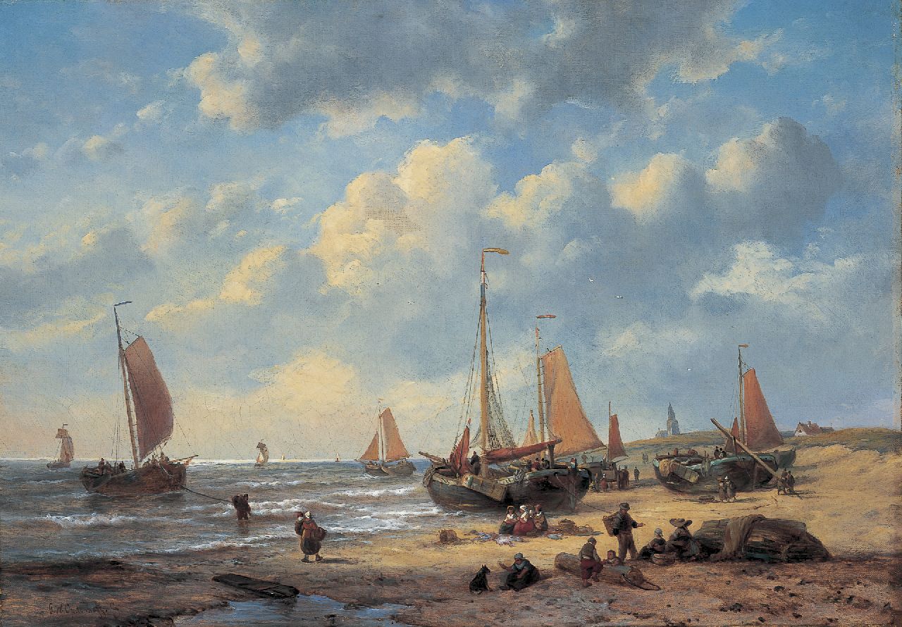George Willem Opdenhoff Kunstwerk • Gemälde • zuvor zu verkaufen Boats on the beach of Scheveningen