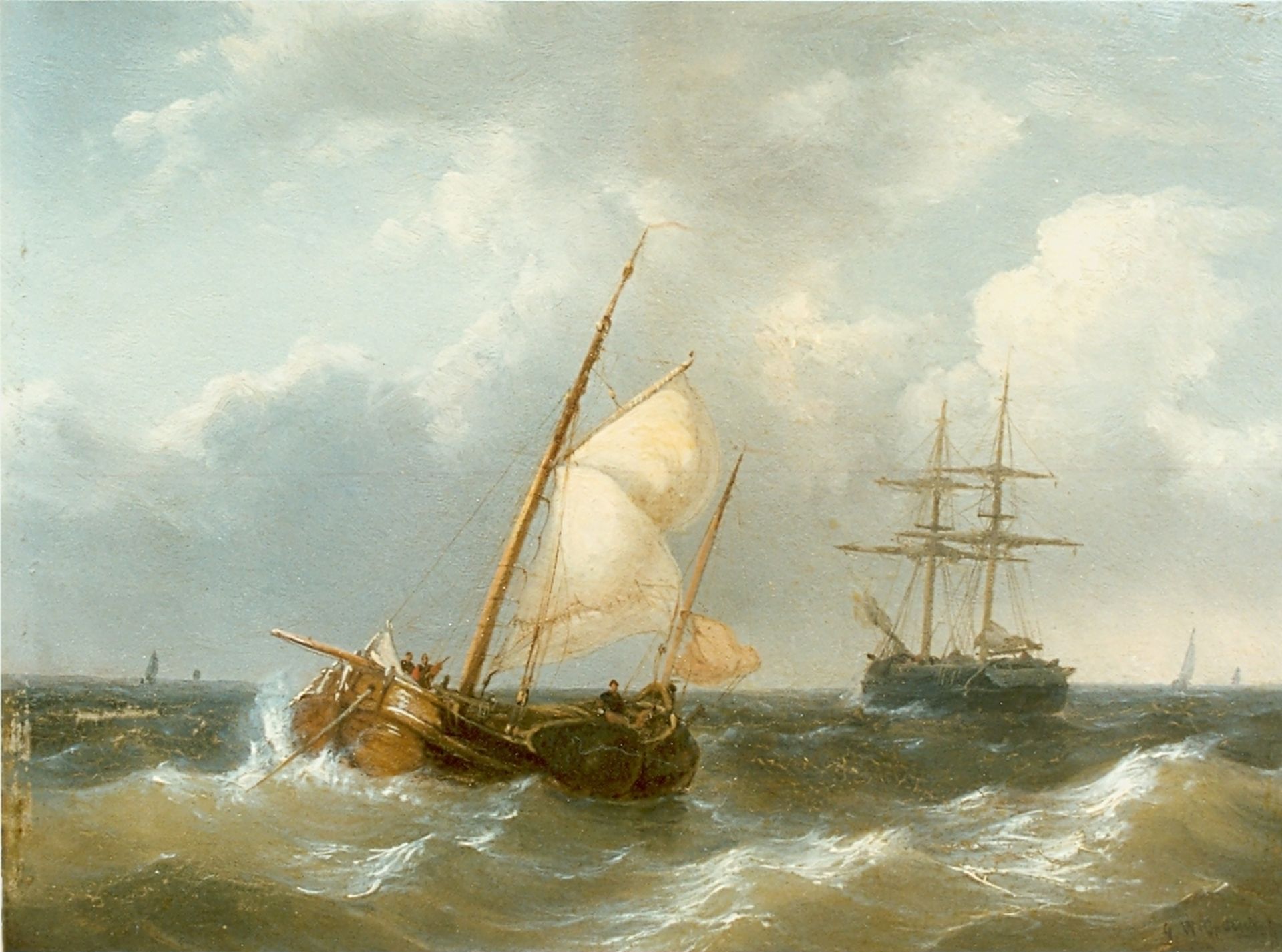 George Willem Opdenhoff Kunstwerk • Gemälde • zuvor zu verkaufen Sailing vessels on choppy waters