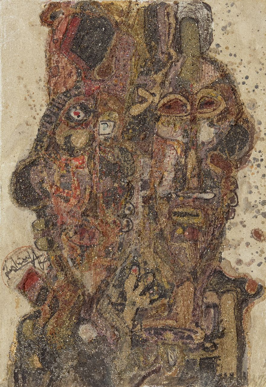Der afrikanische Künstler Georges Ebrin Adingra wurde 1933 in Adaou (Elfenbeinküste) als Ebrin Adingra, Prinz von Kinjabo, geboren. Er studiert Philosophie in Abidjan, aber in den frühen 1950er Jahren entschied er sich schließlich für das, was er schon in jungen Jahren liebte: Zeichnen und Malen. Er reist nach Marseille, wo er an der Akademie der bildenden Künste studiert und sich dann in Paris niederlässt. In seinen Gemälden wendet Adingra den europäischen Kubismus auf afrikanische Themen an. Durch das Mischen seiner Ölfarbe mit feinem Sandstein fügt er Tiefe und Textur hinzu, was für seine Arbeit charakteristisch ist. Der Maler hat ausgestellt in New York, Amsterdam, Paris, Berlin und anderswo. 1990 wurde eine umfangreiche Monographie über sein Leben und Werk publiziert.