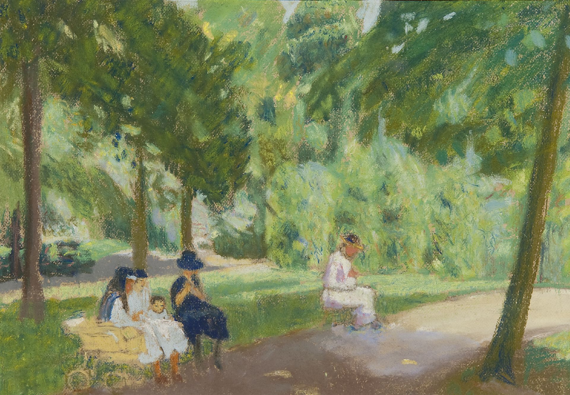 Gerard Johan Staller Kunstwerk • Aquarell • Zeichnung • zuvor zu verkaufen Figures in a park, Paris
