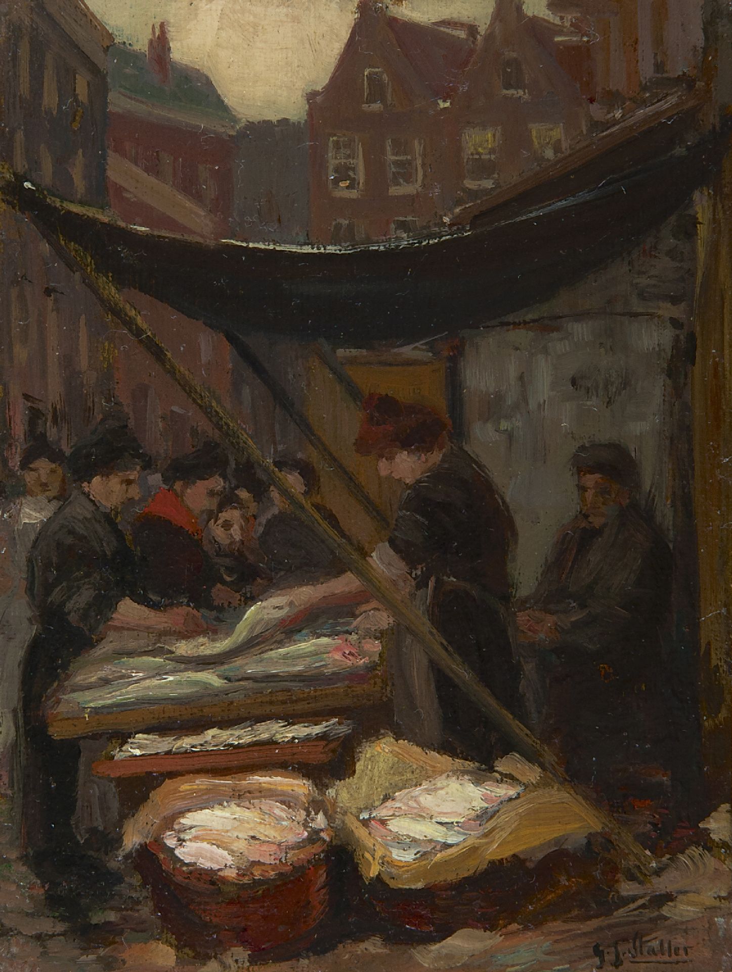Gerard Johan Staller Kunstwerk • Gemälde • zuvor zu verkaufen Fischhändlerin auf Uilenburg, Amsterdam