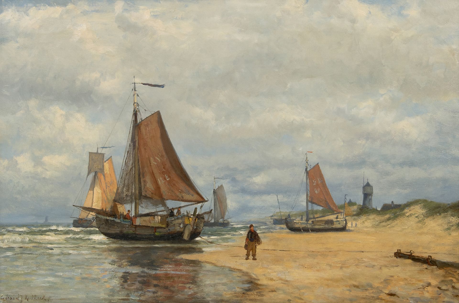 Gerard Koekkoek Kunstwerk • Gemälde • zu verkaufen 'Bomschiffe' auf dem Strand von Katwijk