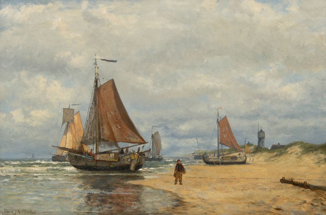 Gerard Koekkoek | Angelegtes Küstenfahrzeug, Öl auf Leinwand, 59,8 x 80,8 cm, Unterzeichnet r.u.