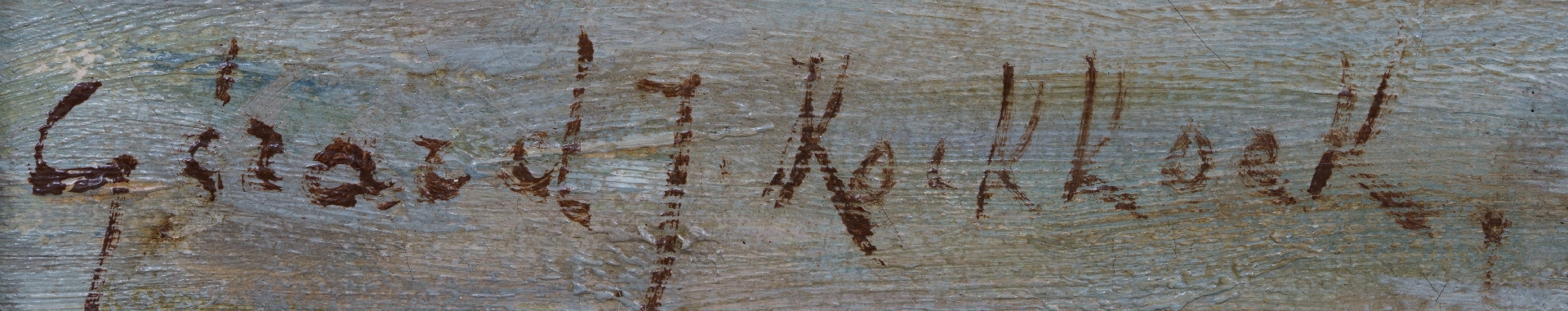 Gerard Koekkoek bekam anfangs Unterricht von seinem Vater Jan H.B. . Später ging er in die Lehre bei dem impressionistischen Landschaftsmaler H.W.Jansen und dem Radierer Pieter Dupont. Er lebte in Hilversum, Amsterdam, Haag und Vlissingen, und machte Studienreisen nach Deutschland und Frankreich. Gerard Koekkoek malte und zeichnete, war aber hauptsächlich Graphiker (Radierungen, Lithographien und Holzschnitte). Ausserdem war er Gemälderestaurator. Sein Werk ist impressionistisch und zeigt eine Vorliebe für die wasserreiche, holländische Landschaft: eine Poldermühle an einem Kanal , ein kleines Fischerdorf am Zuiderzee oder den lebhaften Innenhafen einer Stadt.