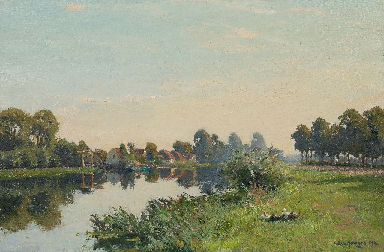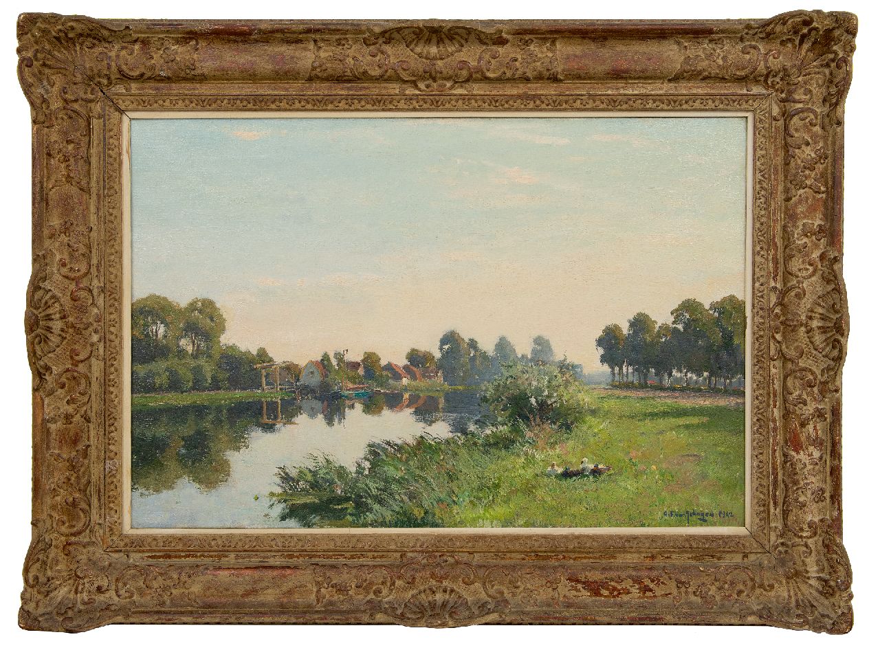 Gerbrand Frederik van Schagen Kunstwerk • Gemälde • zu verkaufen Sommer am Fluss entlang