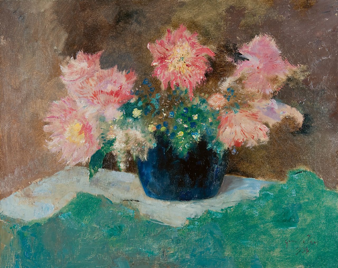 Germ de Jong Kunstwerk • Gemälde • zuvor zu verkaufen Dahlien in blauer Vase