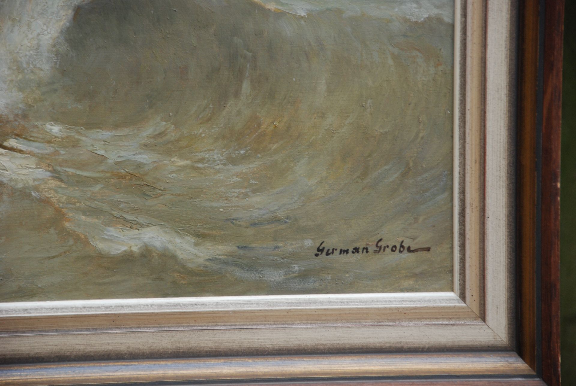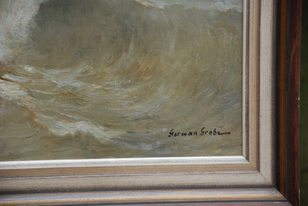 Der deutsche Maler German Grobe war Schüler der Düsseldorfer Akademie und wurde später Teil der Düsseldorfer Landschaftsmalerschule. Einer seiner Lehrer dort war der Marinemaler E.G. Ducker, der viel Einfluss auf seinen Schüler hatte. Ab 1887 verbrachte Grobe jeden Sommer im niederländischen Fischerdorf Katwijk, wo er Dorfszenen, Strandszenen und das Leben der Fischer malte. Sein impressionistischer, oft skizzenhafter Stil und die Einheitlichkeit des Tons verraten den Einfluss der Maler der Haager Schule, insbesondere Mauve und Mesdag.