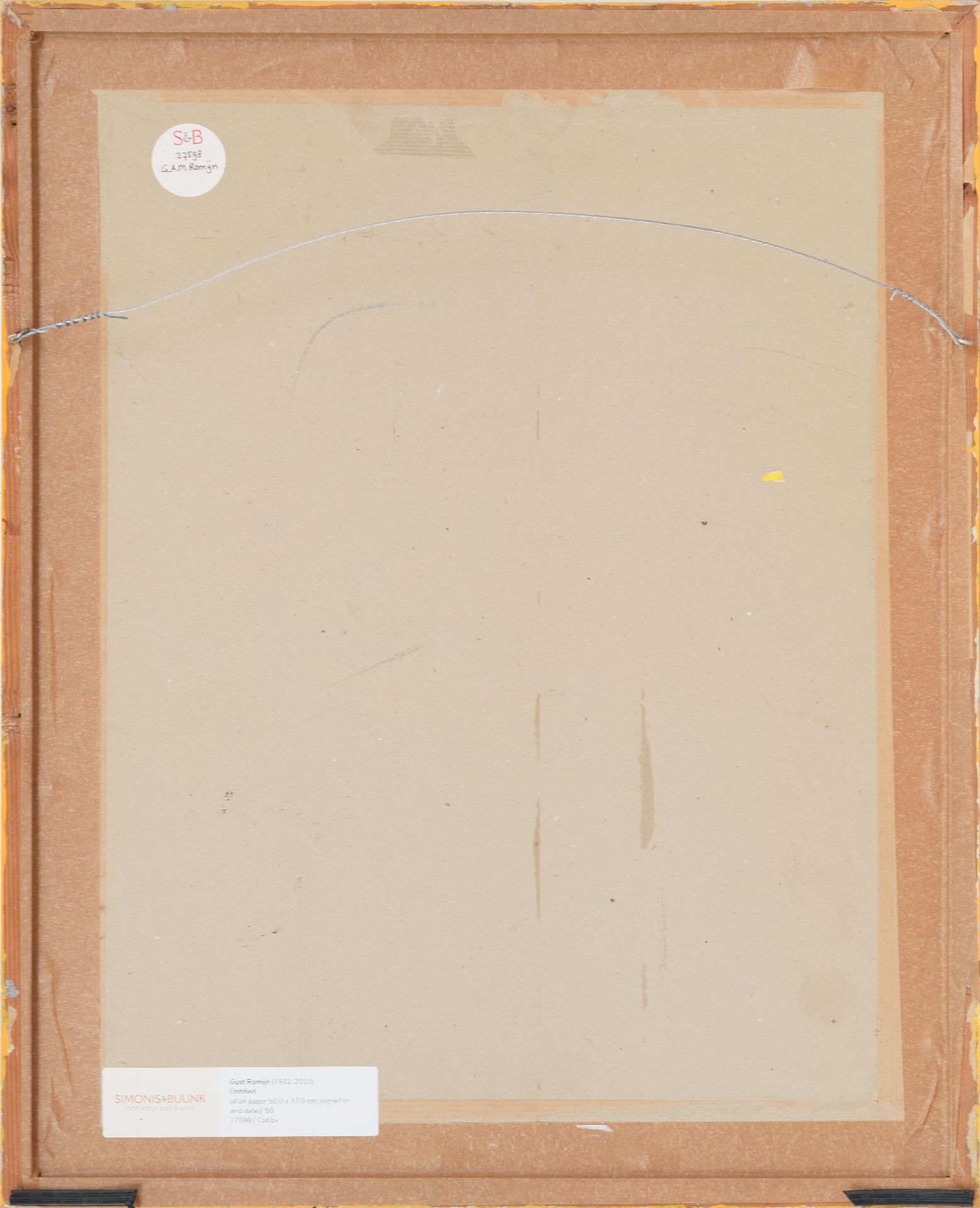 Gust Romijn gehörte zu den Künstlern, die nach dem Zweiten Weltkrieg durch Abstraktion und Experiment radikal mit der traditionellen Kunst brachen. Er war Mitglied der Liga Nieuw Beelden, die aus der berühmten Künstlergruppe Vrij Beelden (1947-1953) hervorging, der auch die Cobra-Maler angehörten. Romijn studierte zunächst Architekt und begann 1943 mit der Herstellung von Gemälden und Skulpturen. Seine abstrakt-expressionistischen Gemälde zeichnen sich durch einen turbulenten Farbauftrag und eine reiche Farbigkeit bis hin zu tiefem Schwarz aus. In den 1990er Jahren wurden seine Arbeiten geometrischer.