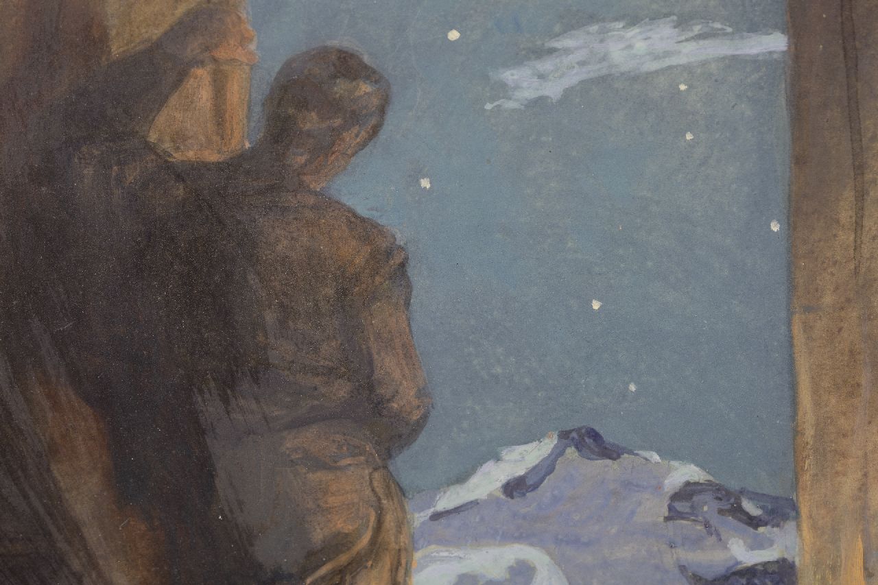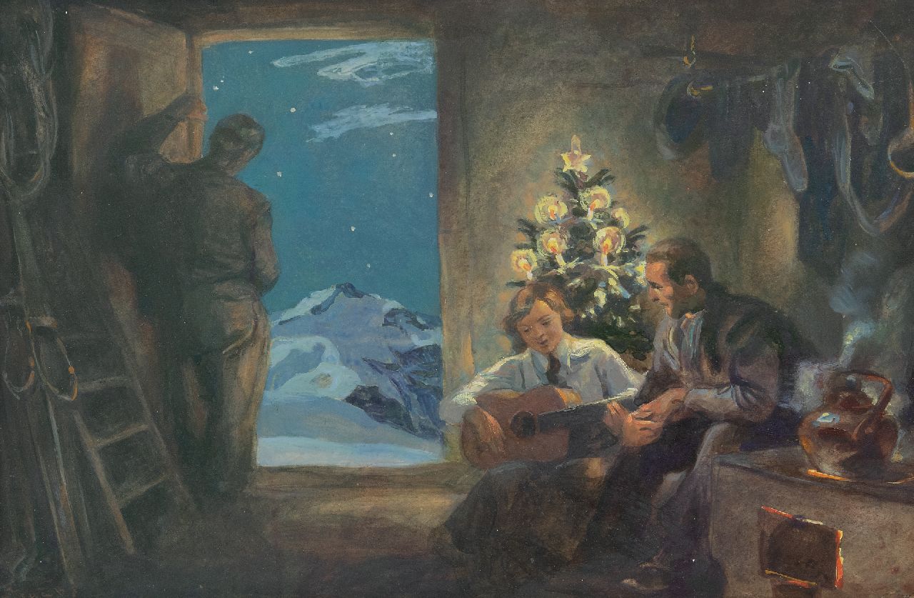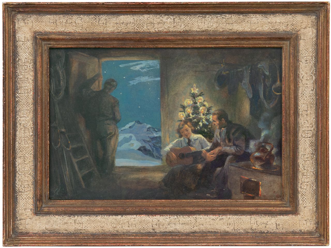 Gustav Traub Kunstwerk • Gemälde • zuvor zu verkaufen Heiliger Abend hoch in den Alpen