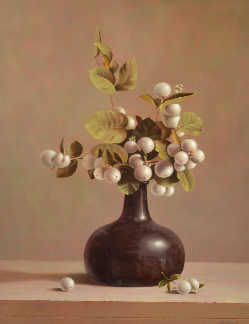 Gyula Bubarnik Kunstwerk • Gemälde • zuvor zu verkaufen Stilleben mit Schneebeeren