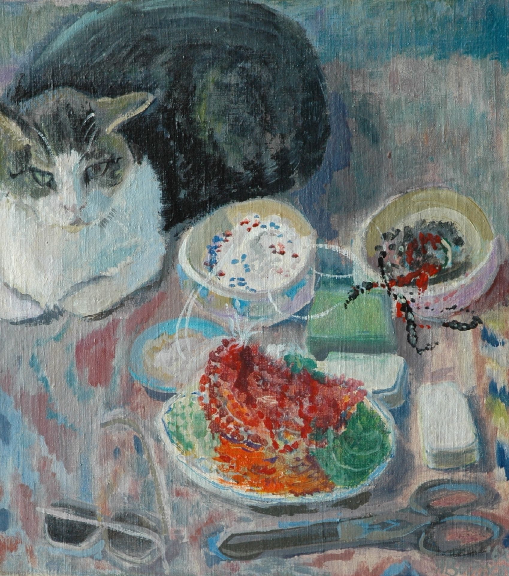 Hannie Bouman Kunstwerk • Gemälde • zuvor zu verkaufen Still life with cat
