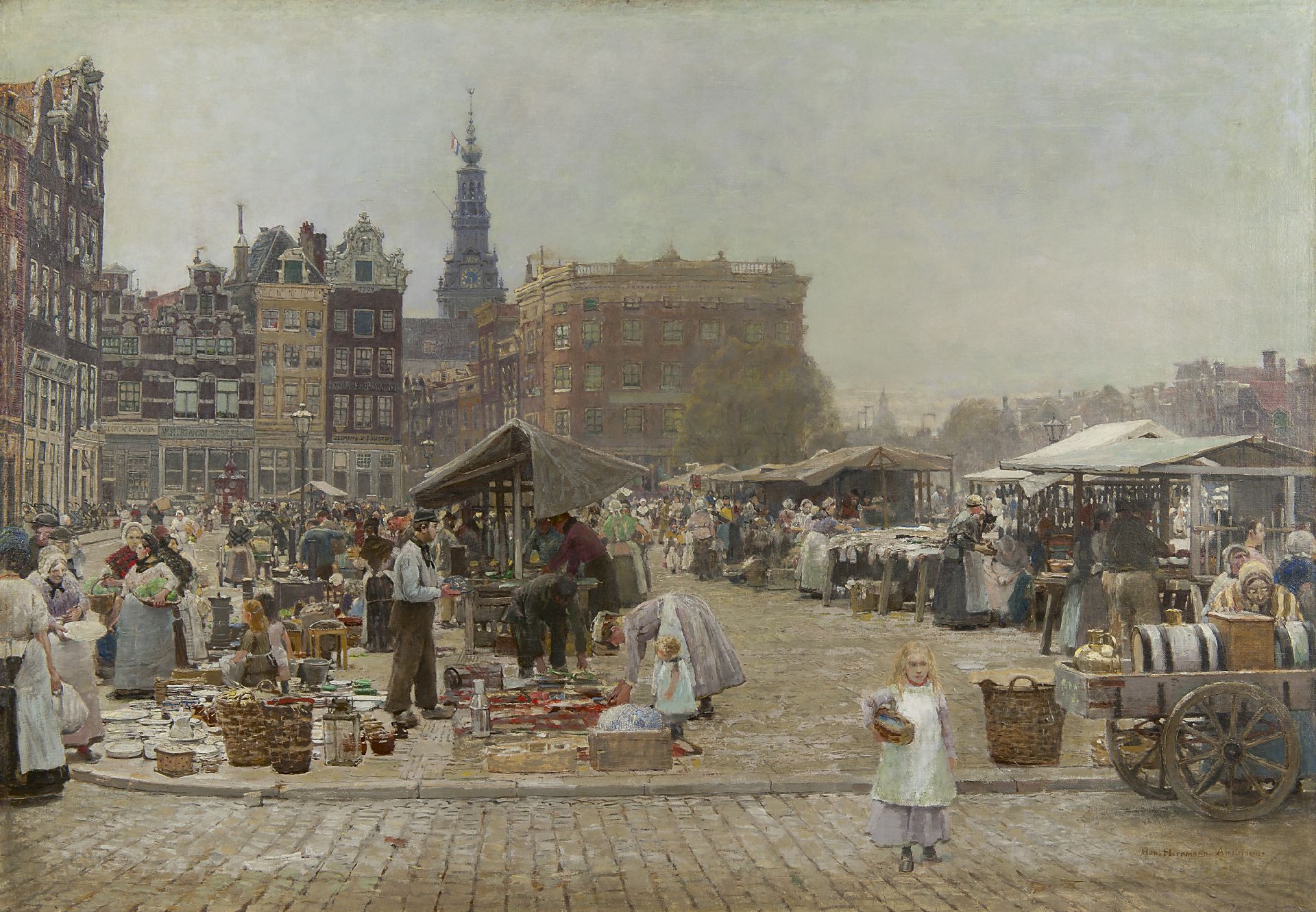 Hans Herrmann Kunstwerk • Gemälde • zuvor zu verkaufen View on the 'Nieuwmarkt', Amsterdam