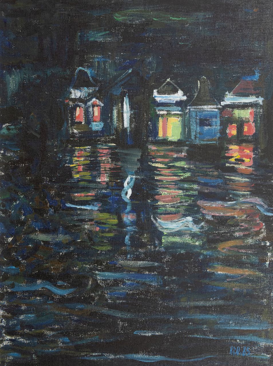 Hans Post Uiterweer Kunstwerk • Gemälde • zu verkaufen Häuser am Wasser