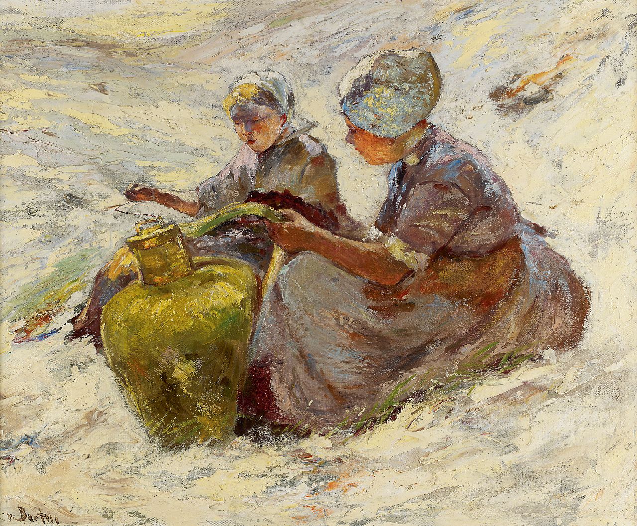 Hans von Bartels Kunstwerk • Gemälde • zuvor zu verkaufen Two fisherman's wives in the dunes