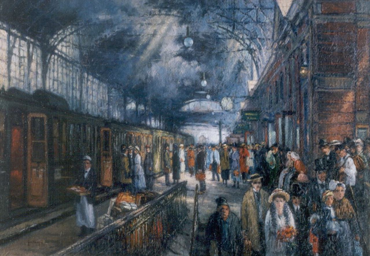 Hans von Faber du Faur Kunstwerk • Gemälde • zuvor zu verkaufen Travellers on the platform of Hollands Spoor, The Hague