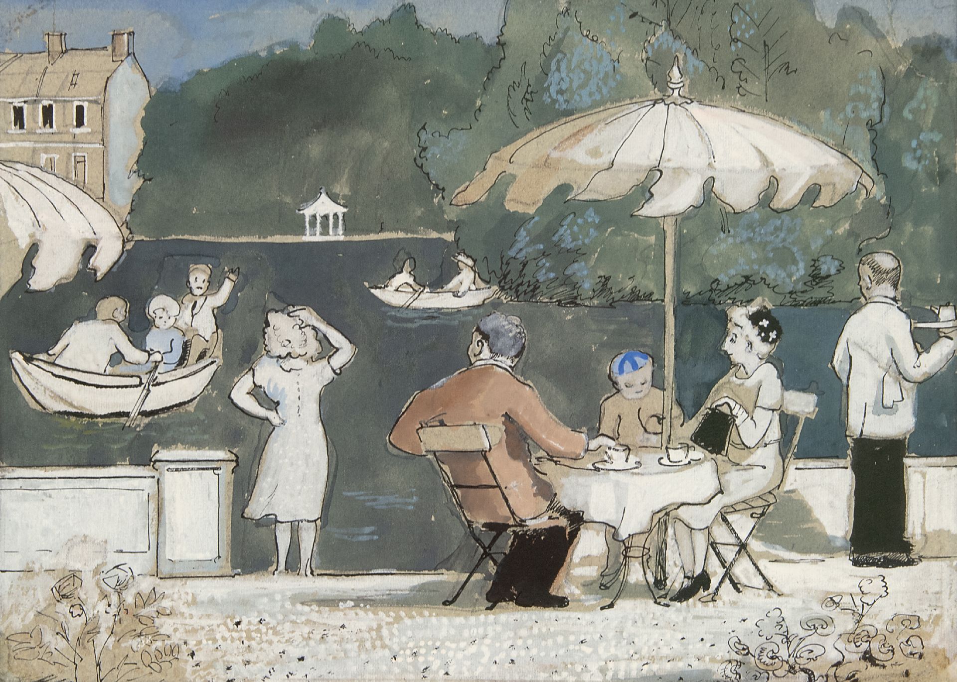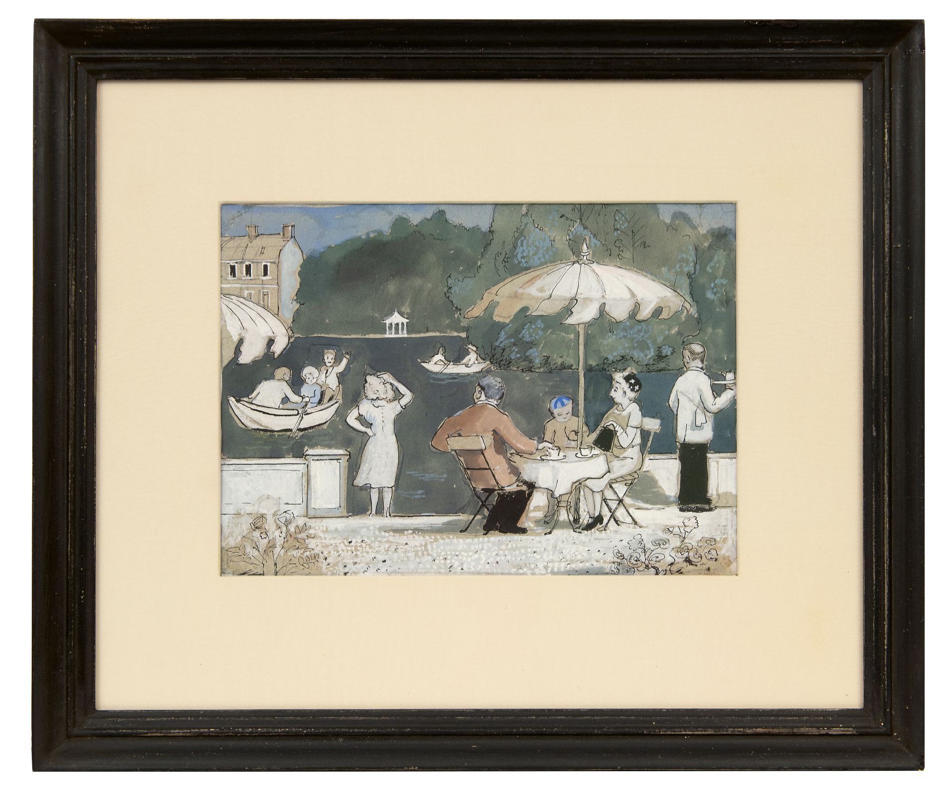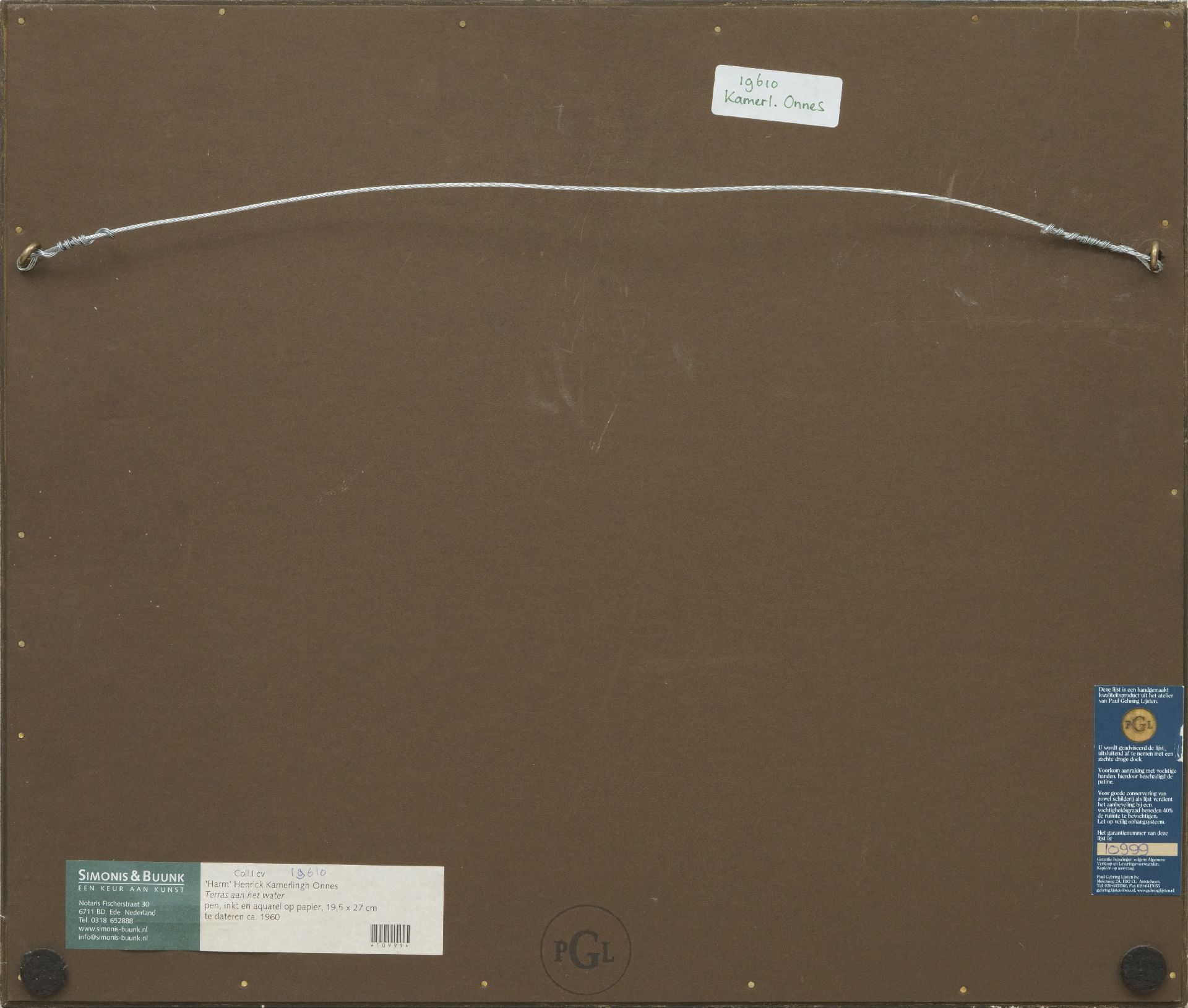 Harm Kamerlingh Onnes Kunstwerk • Aquarell • Zeichnung • zu verkaufen Eine Terrasse am Fluss Oude Rijn zwischen Valkenburg und Oegstgeest
