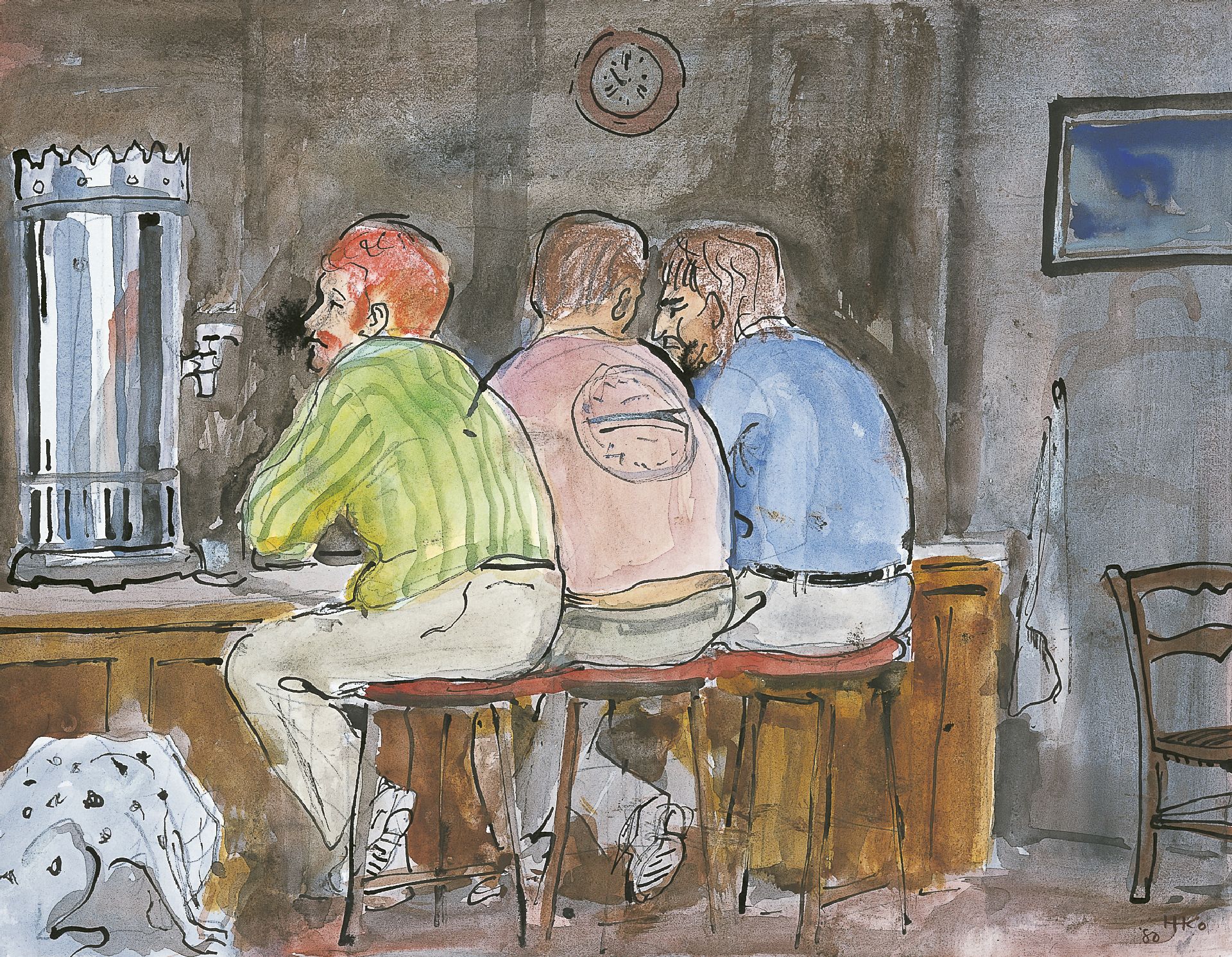 Harm Kamerlingh Onnes Kunstwerk • Aquarell • Zeichnung • zuvor zu verkaufen Men in a pub
