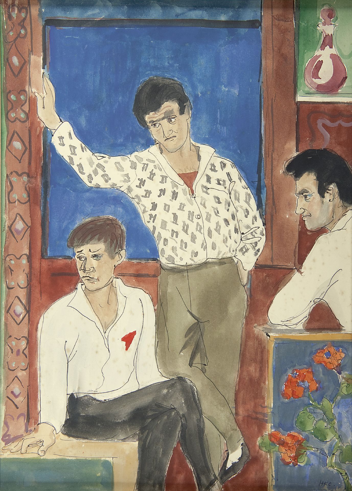 Harm Kamerlingh Onnes Kunstwerk • Aquarell • Zeichnung • zuvor zu verkaufen Three friends