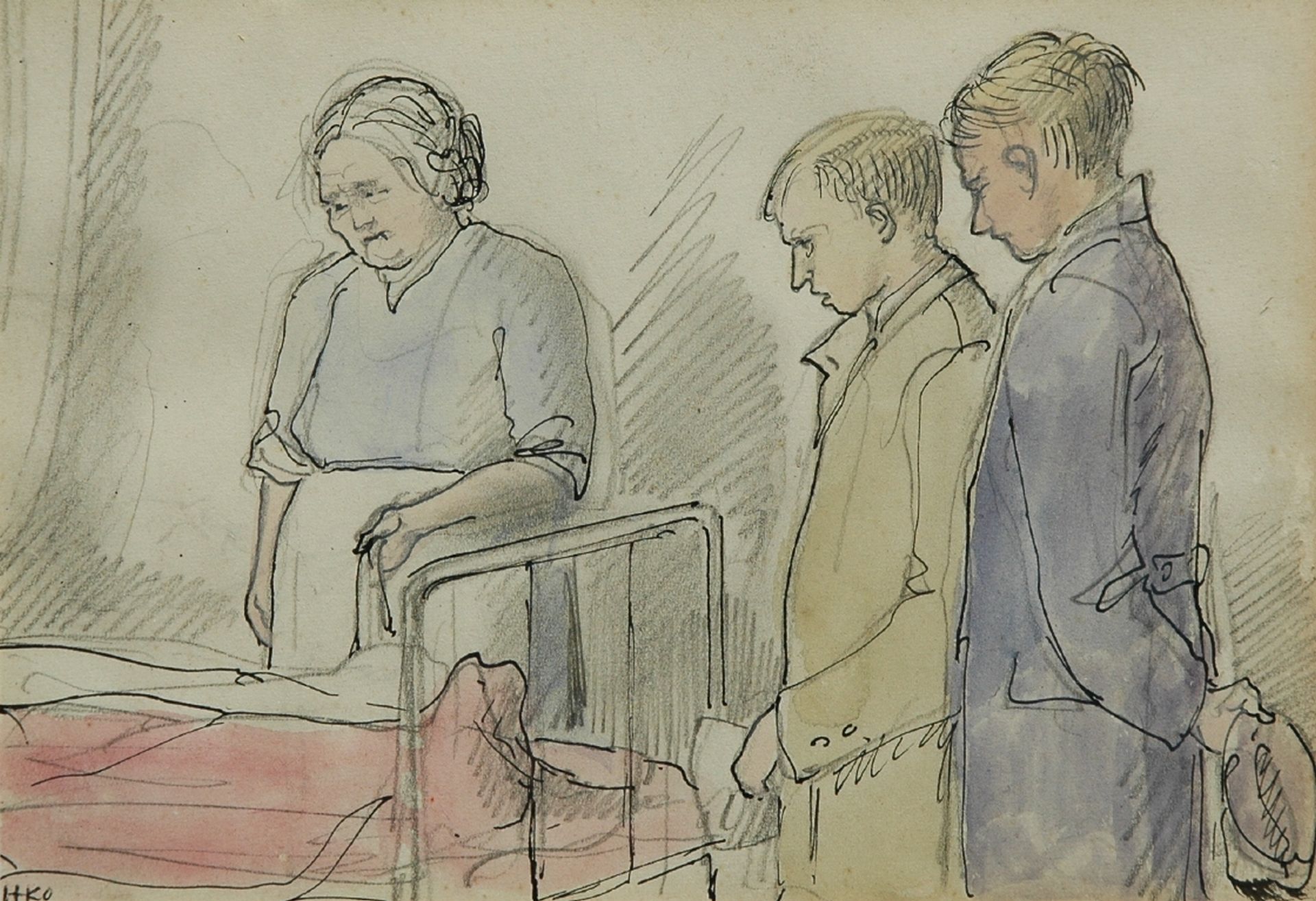 Harm Kamerlingh Onnes | Im Krankenhaus, Bleistift, Feder und Aquarell auf Papier, 20,3 x 28,9 cm, Unterzeichnet r.u. mit Monogramm und datiert '51