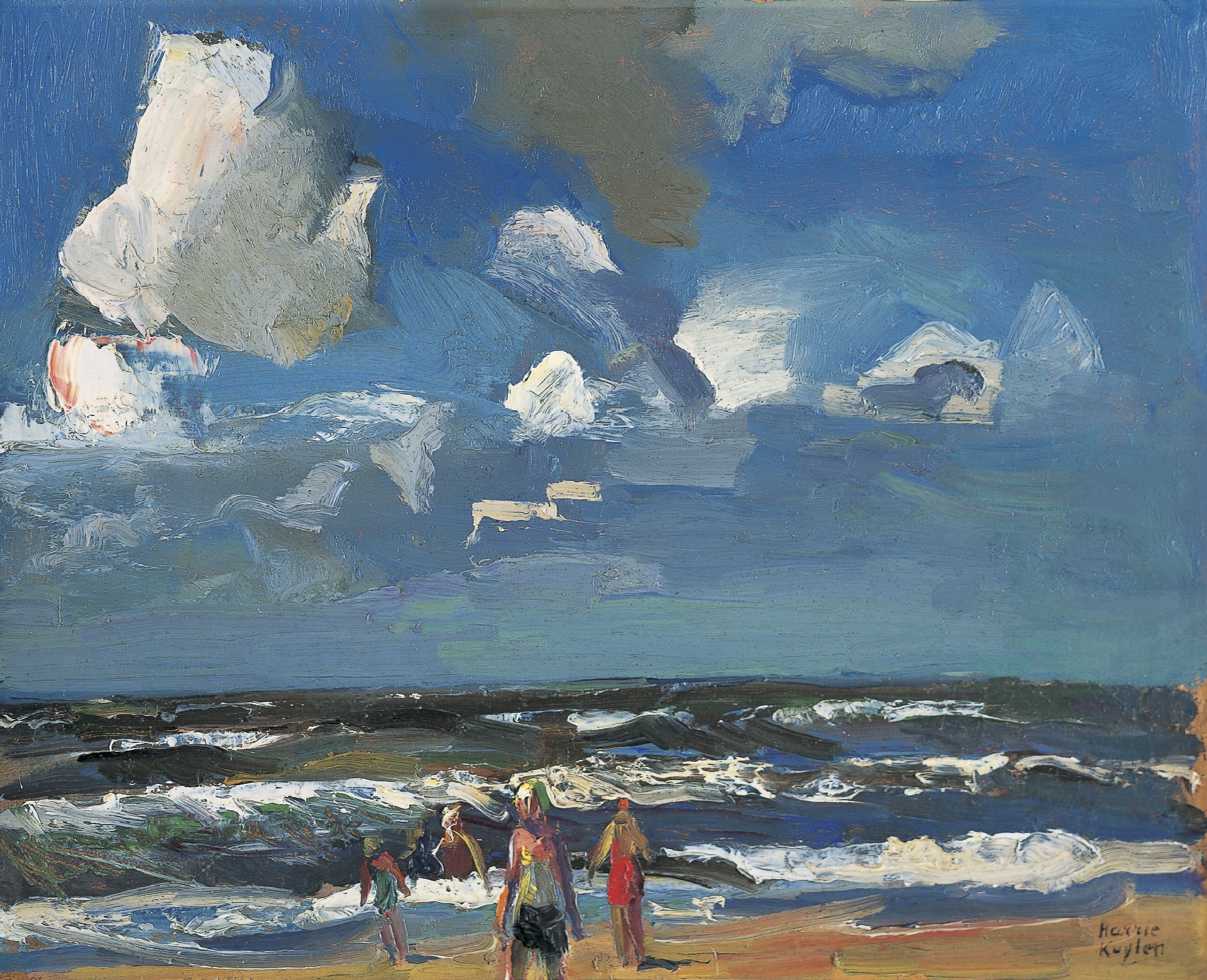 Harrie Kuijtens Werk zeichnet sich durch seine stilistische Vielfalt aus und entzieht sich jeder Kategorisierung in eine bestimmte Kunstrichtung. Er war stets von der menschlichen Figur fasziniert und malte neben seiner Vorliebe für Akte, die ihn sein Leben lang begleitete, auch Strandszenen, Feste und farbenfrohe Marktszenen, die die sonnige Seite des Lebens zeigten. Neben dem Erfolg, den er ab 1915 mit seinen Akten feierte, erlangte der Maler auch mit seinen Strandbildern beachtliche Berühmtheit. Diese sind in der Regel kleinformatig und ausnahmslos mit schnellen, präzisen Pinselstrichen komponiert: Momentaufnahmen des Küstenlebens an der niederländischen Küste. Die Art und Weise, wie er den Himmel und die Bewegung des Meeres mit seinen rollenden Wellen und den bunten Badegästen in der Brandung malt, ist von großer Schönheit. Ab den 1930er Jahren zeigt Kuijtens Werk eine Affinität zur Bergen-Schule in den dunklen, kraftvoll komponierten Bergen-Landschaften und Stillleben.