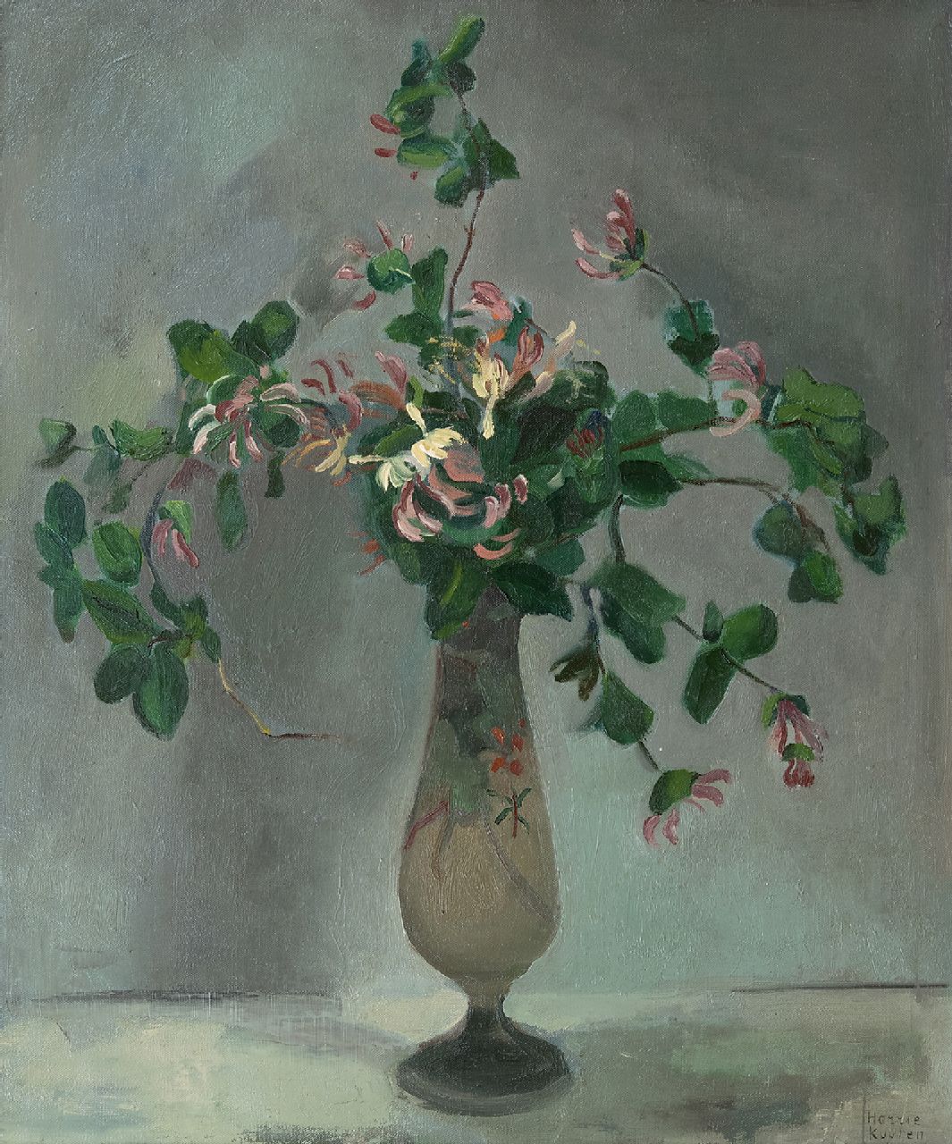 Kuijten H.J.  | Henricus Johannes 'Harrie' Kuijten | Gemälde zum Verkauf angeboten | Geissblattzweige in einer Vase, Öl auf Leinwand 66,4 x 55,5 cm, Unterzeichnet u.r.
