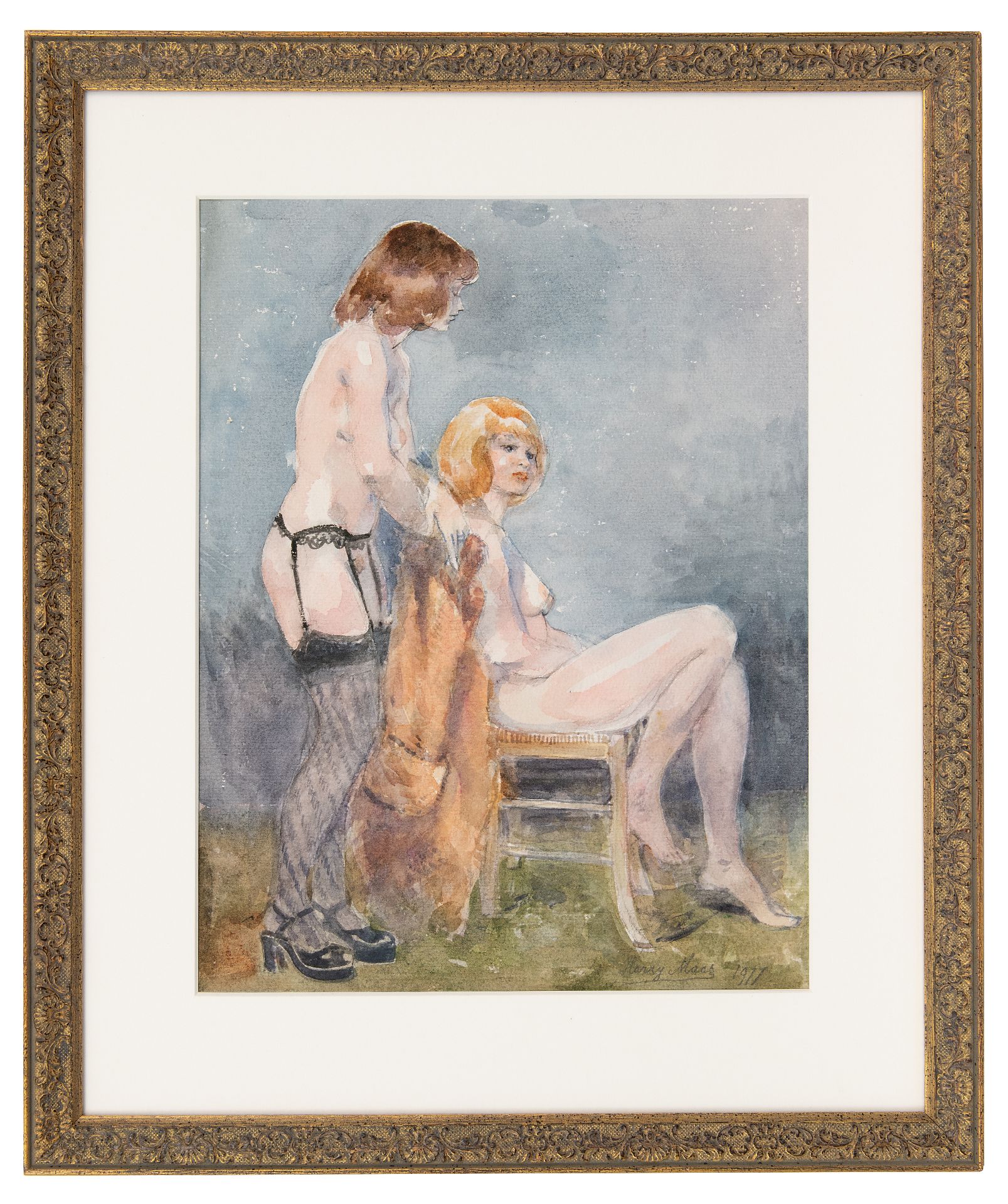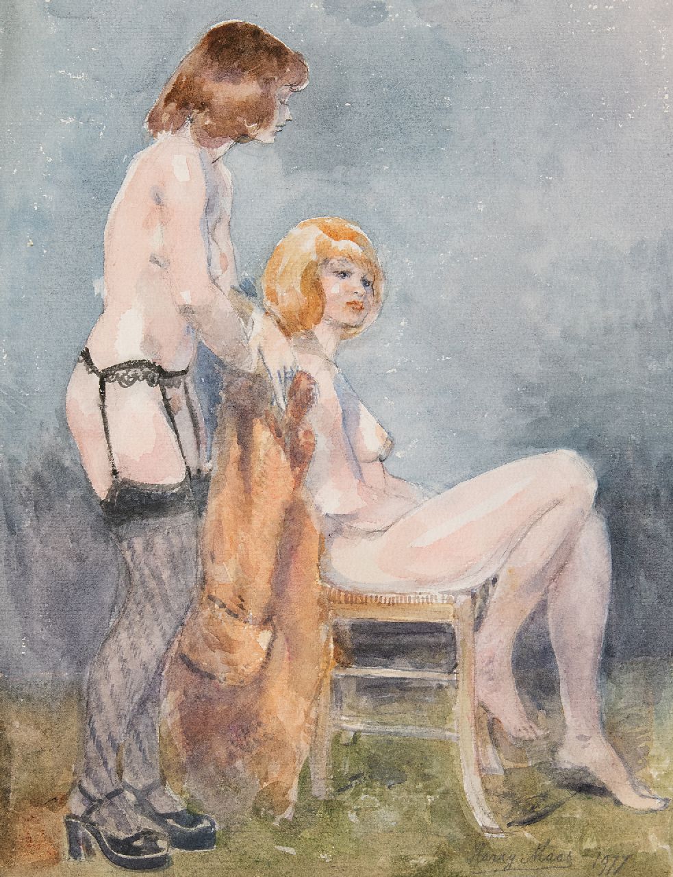 Harry Maas Kunstwerk • Aquarell • Zeichnung • zu verkaufen Stehend und sitzend Nackt