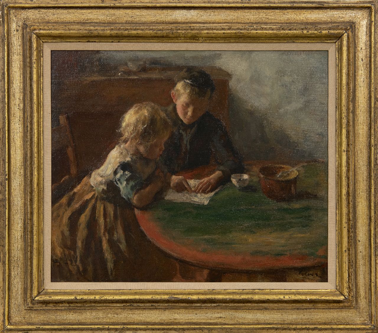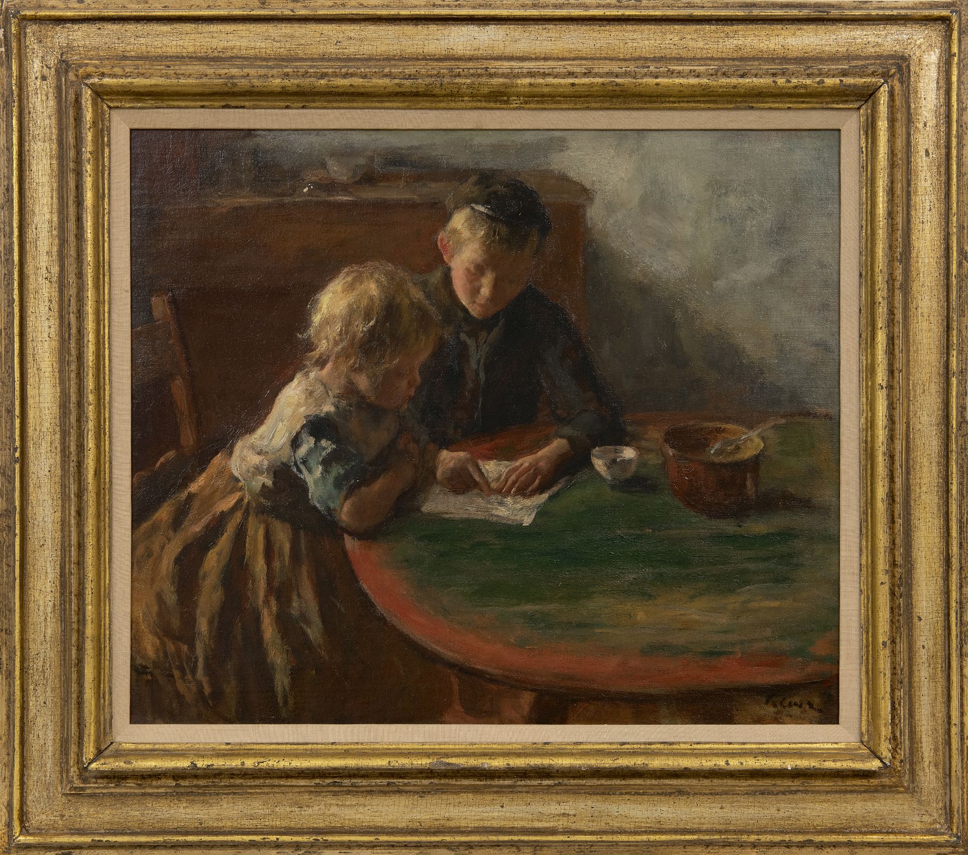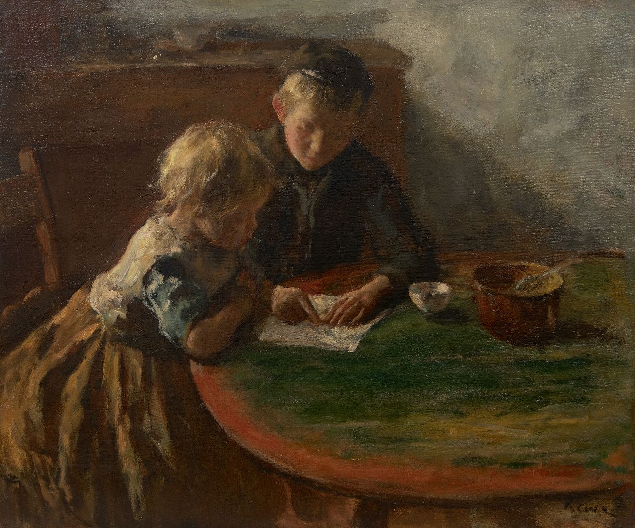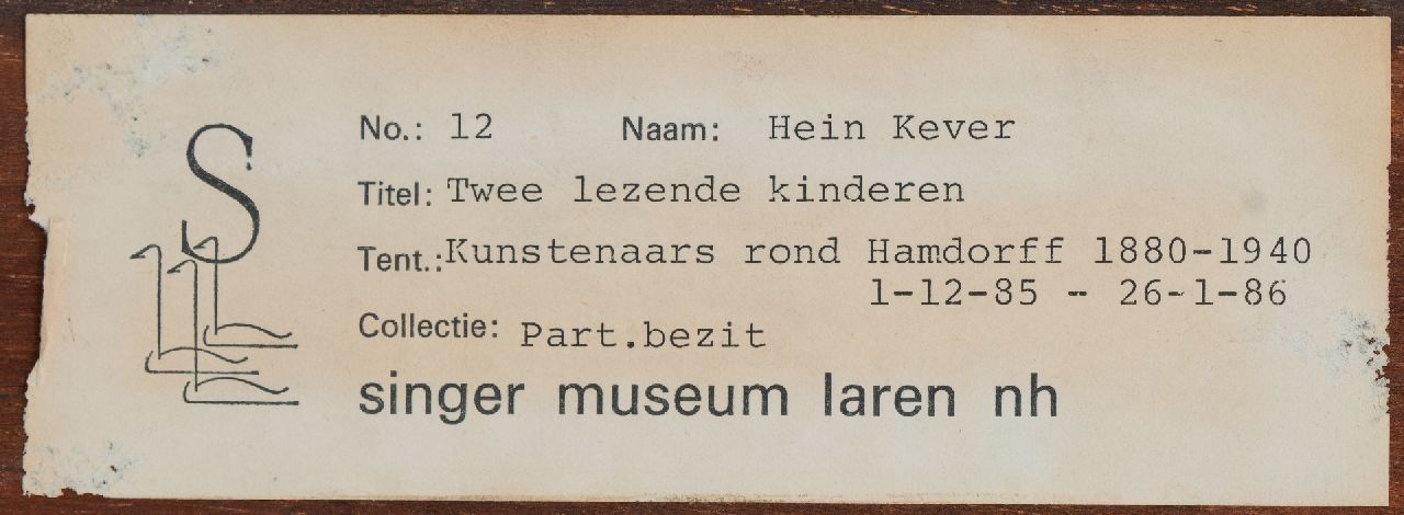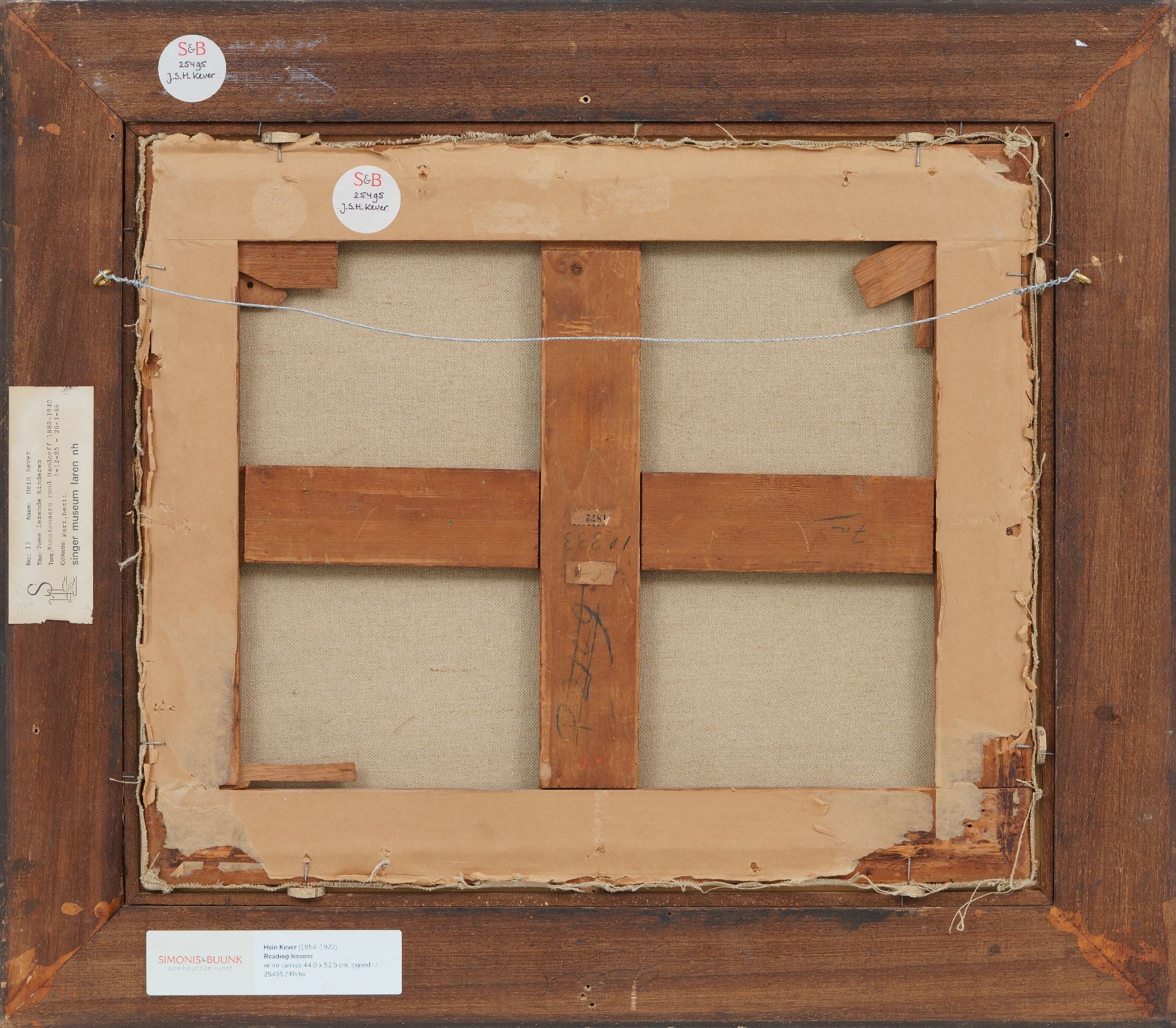 Jacob Simon Hendrik Kever gehört zu den bekanntesten Malern der Larense School. Er wurde in Amsterdam geboren, zeigte schon sehr jung sein Talent und bekam über Isaac Israels eine Lehrstelle im Atelier von P.F.Greive.Nach dessen Verscheiden 1878 liess Kever sich im Gooi nieder, zunächst in Blaricum und nachher in Laren, wo er Ratschläge und Hinweise bekam von Anton Mauve. Im Winter hatte er dann eine Werkstatt in Amsterdam. Kever war namentlich bekannt durch seine in lockeren Pinselstrichen und harmonierenden Farben gemalten Innenräume mit Figuren, Bauern und Kindern. Man bewunderte darin die Atmosphäre. den Lichteinfall und die Farben, so wie das besondere Grün vom Gras.