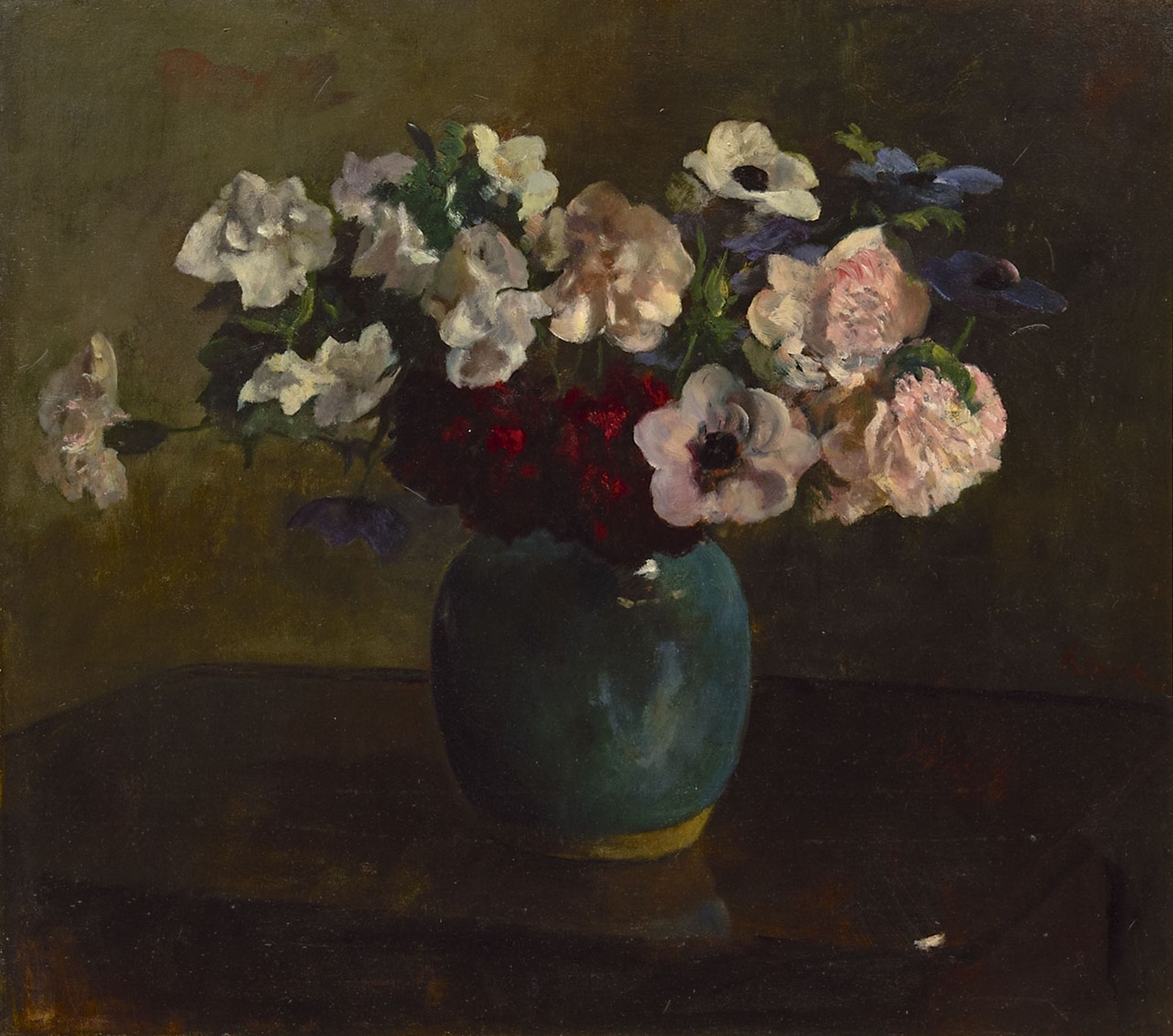 Hein Kever Kunstwerk • Gemälde • zuvor zu verkaufen Anemonen und Pfinkstrosen in blauer Vase