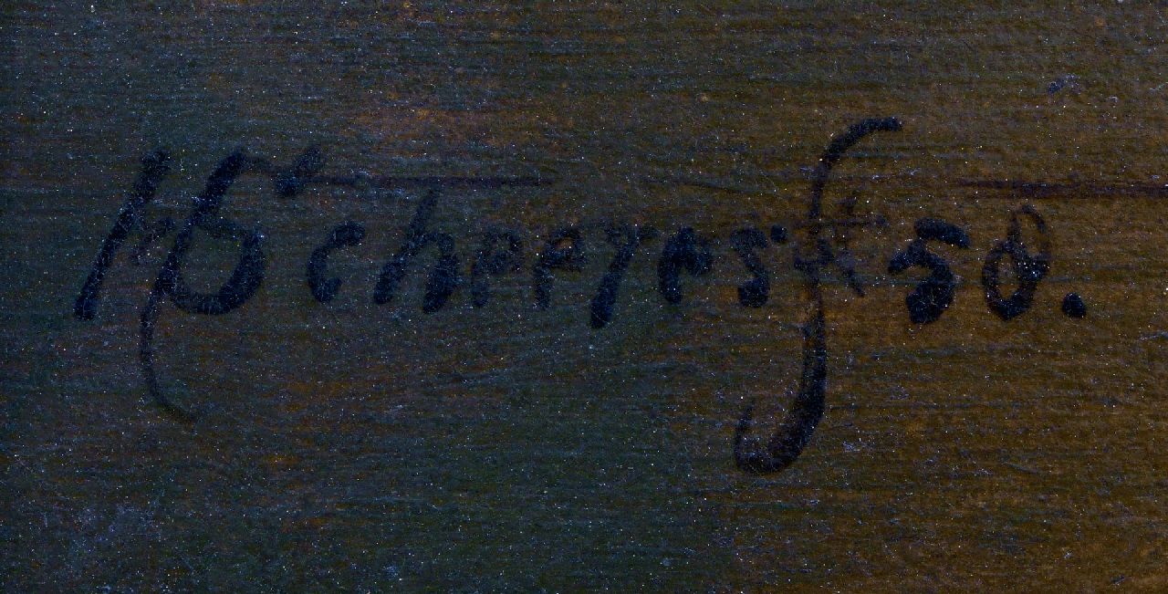 H.J.Scheeres ging schon im Alter von elf Jahren bei dem Haager Genremaler Huib van Hove in die Lehre, der mit seinen auf Pieter de Hoogh inspirierten Innenräumen bekannt geworden war. Dann baute Scheeres weiter auf dasjenige, was er gelernt hatte. Er spezialisierte sich auf Innenräume und Genrestücke, oft mit dem Effekt von einfallendem Sonnenlicht. Auch Figuren in einer Umgebung aus dem 17. Jahrhundert und Waffenschmieden in ihrer Schmiede aus dem 17. oder 18. Jahrhundert bilden oft das Thema seiner Gemälde.