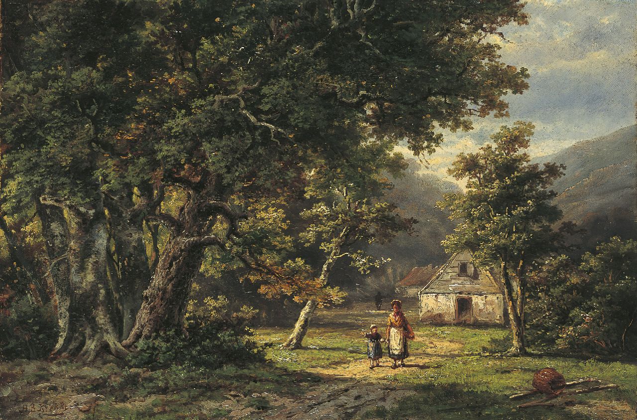 Hendrik Barend Koekkoek Kunstwerk • Gemälde • zuvor zu verkaufen Mutter und Kind auf einem Waldweg im Tal