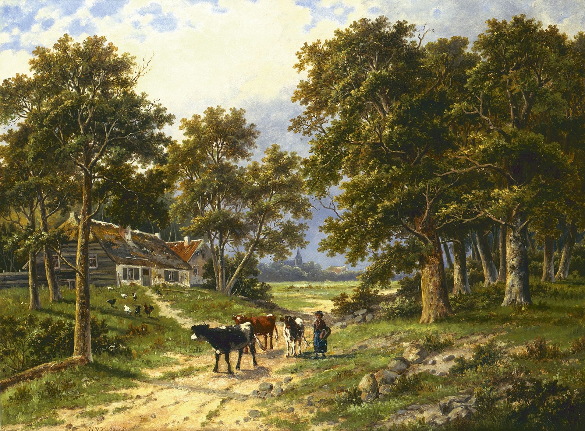 Hendrik Barend Koekkoek Kunstwerk • Gemälde • zuvor zu verkaufen Zurück mit dem Vieh