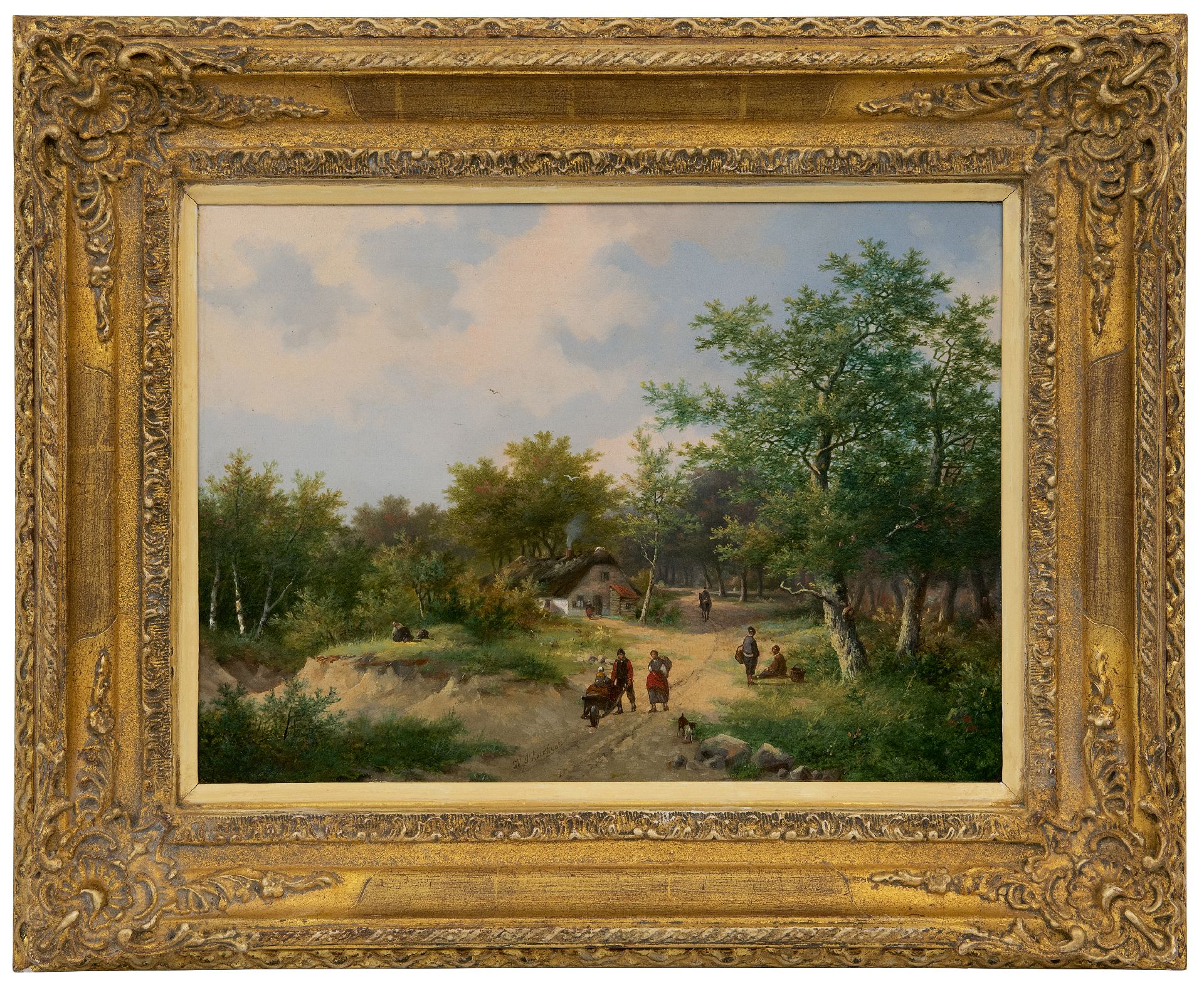 Hendrik Pieter Koekkoek Kunstwerk • Gemälde • zu verkaufen Bauern auf einer Landstraße