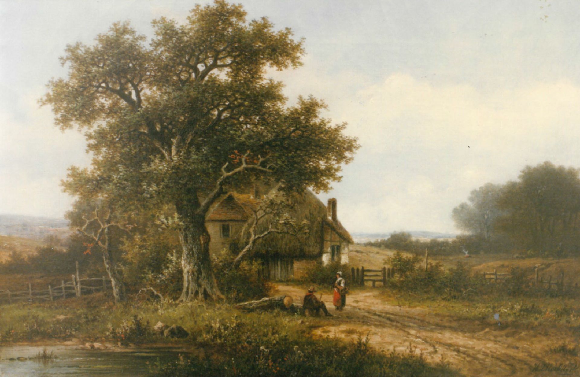 Hendrik Pieter Koekkoek Kunstwerk • Gemälde • zuvor zu verkaufen Auf dem Bauernhof