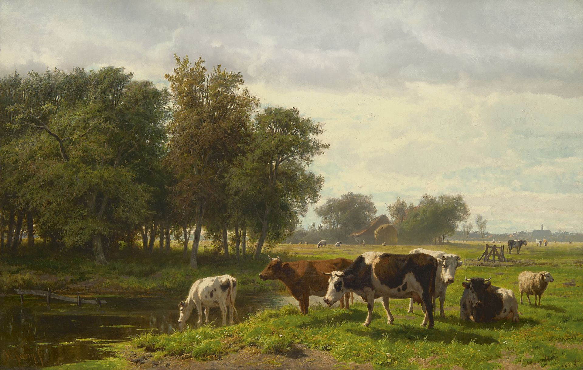 Der talentierte Maler von Viehstücken Hendrik Savrij war der Sohn und Schüler der Stillebenmaler Martinus Savrij in Haarlem. In dieser Stadt wurde er 1823 geboren und er wohnte da bis zu seinem Tode 1907. Auch seine Schwester, Cornelia Johanna, war Malerin und später würde sich auch sein Sohn Henri Savrij einen Namen machen als Maler von Landschaften mit Vieh. In der Malerei von künstlich geordnetem und schön modelliertem Vieh in holländischen Weidelandschaften brachte er die Tradition weiter, die mit Albert Cuyp und Paulus Potter im 17. Jahrhundert angefangen hatte. Zeitgenossen waren unter anderen die Haager Viehmaler Pieter Stortenbeker und Jan de Haas.