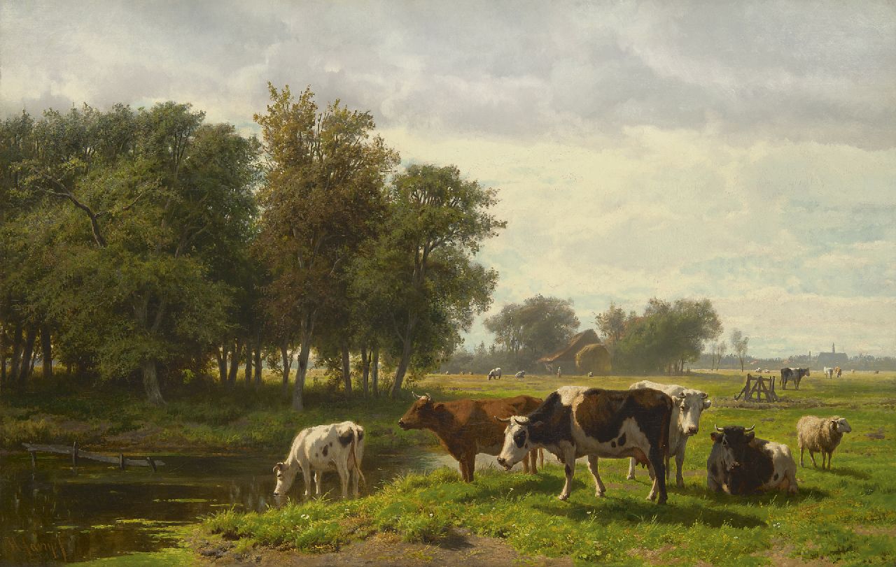Hendrik Savrij Kunstwerk • Gemälde • zuvor zu verkaufen Polderlandschaft mit Weidevieh bei Haarlem