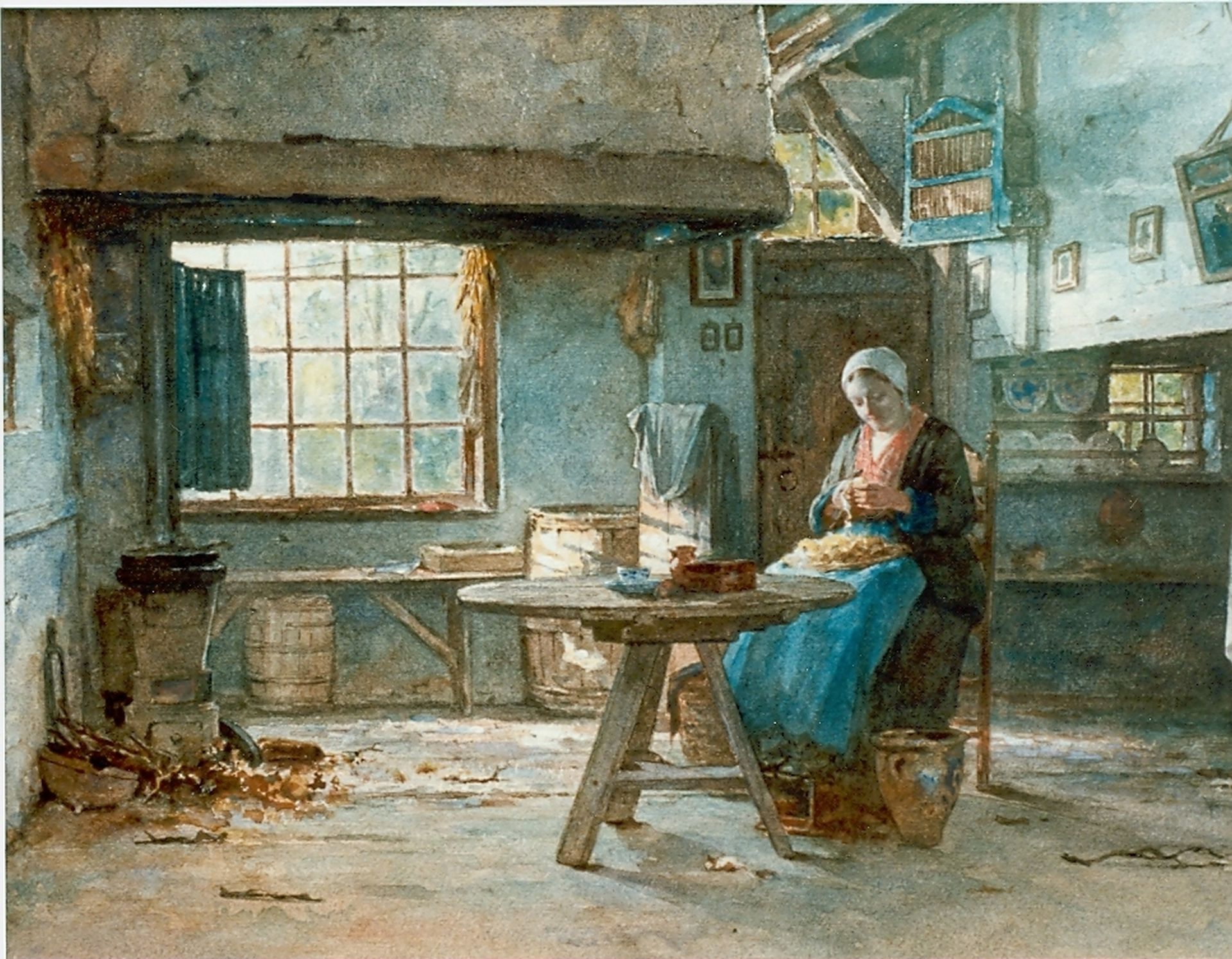Hendrik Valkenburg Kunstwerk • Aquarell • Zeichnung • zuvor zu verkaufen Preparing dinner