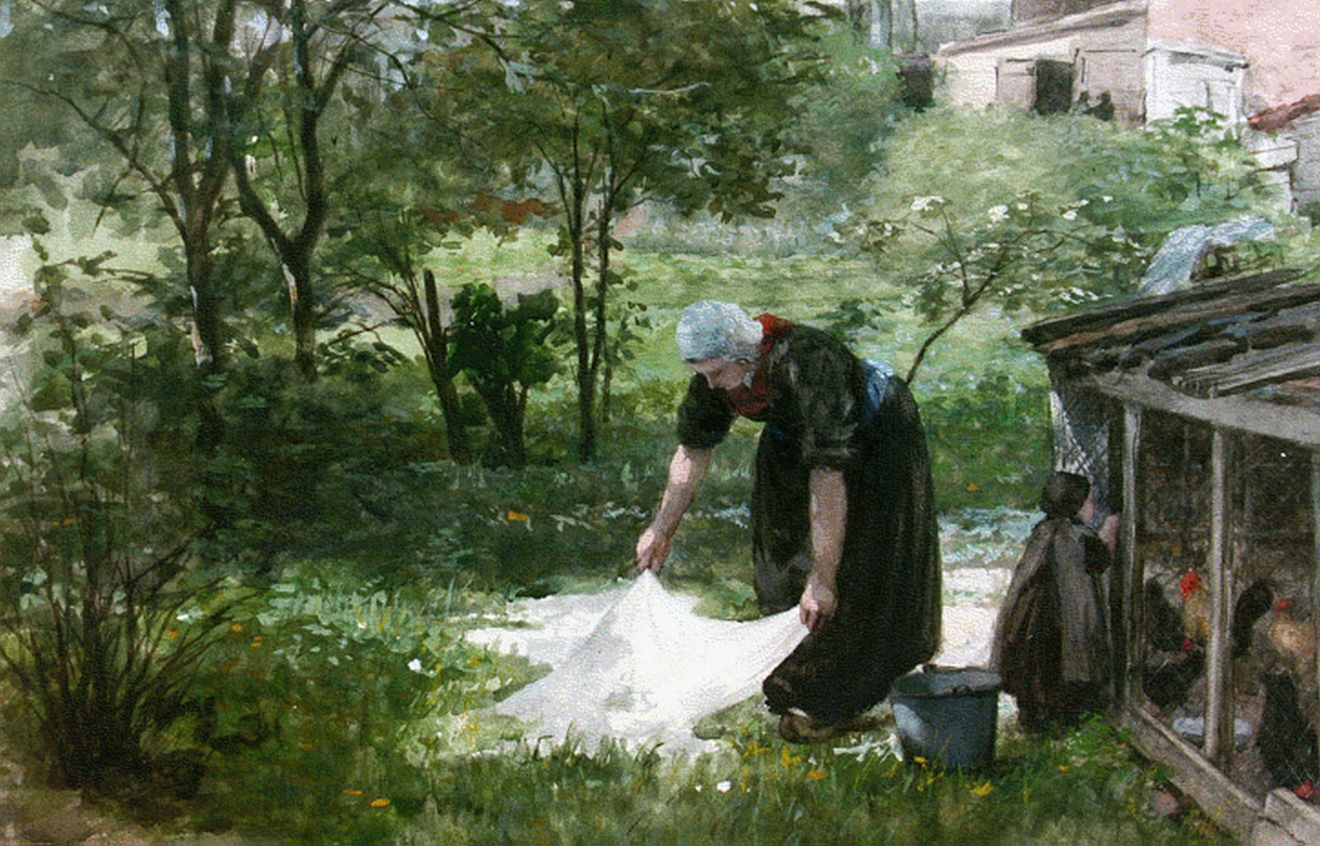 Hendrik Valkenburg Kunstwerk • Aquarell • Zeichnung • zuvor zu verkaufen Washing-day