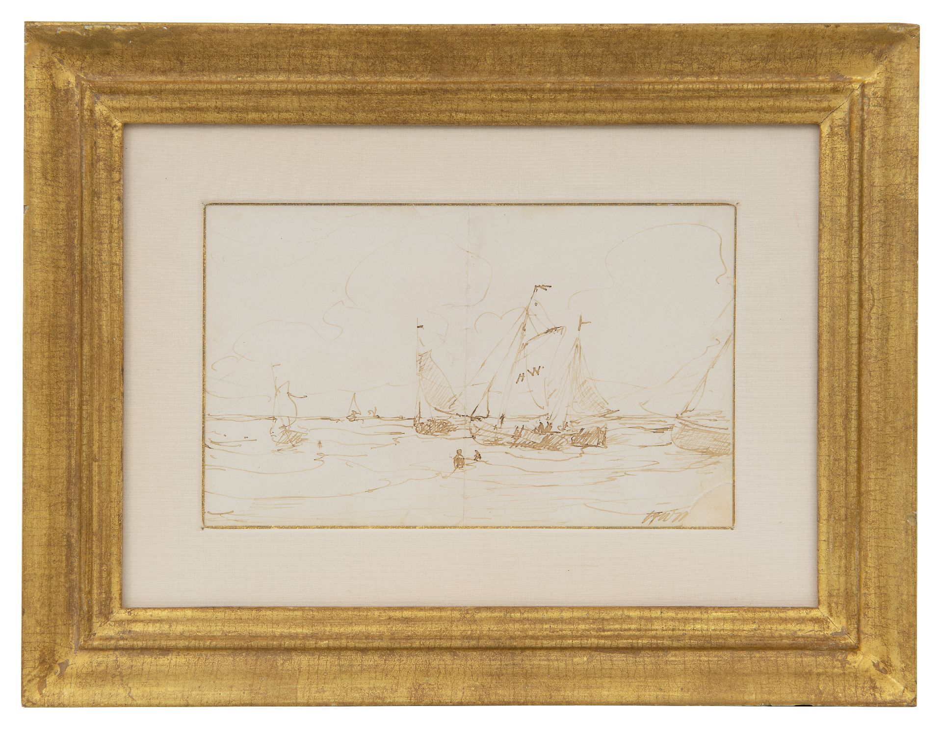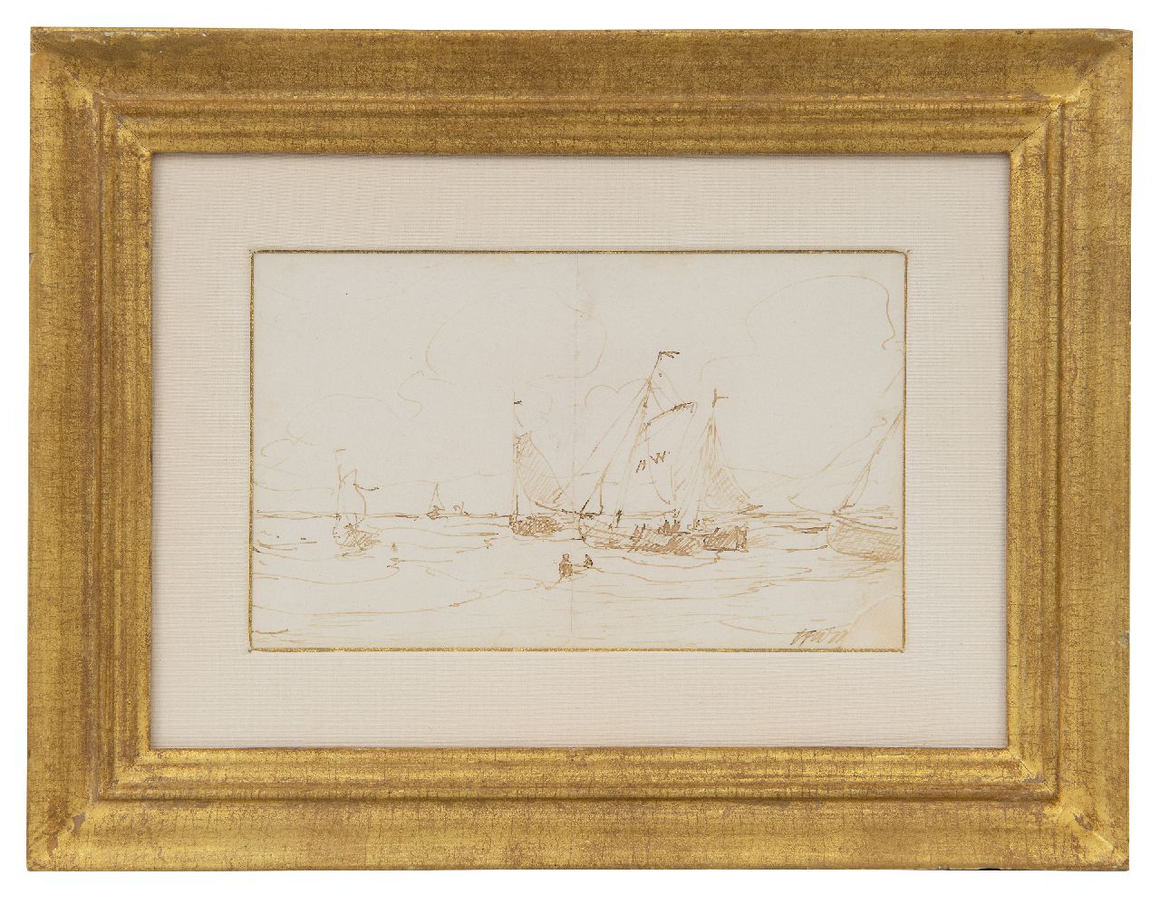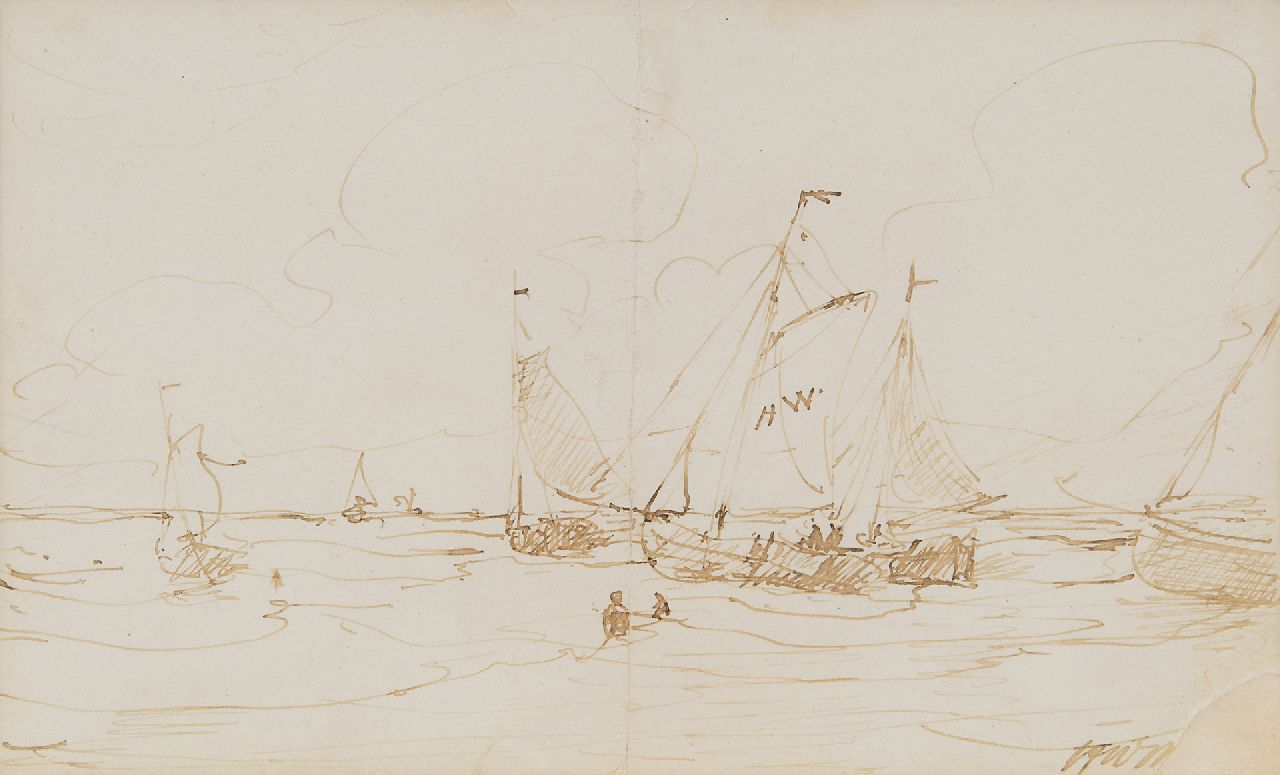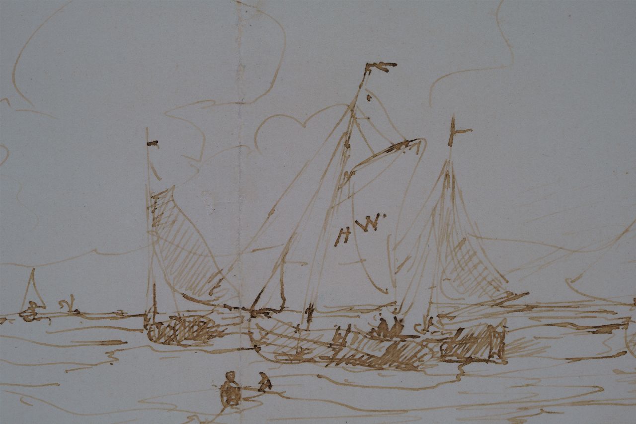 Hendrik Willem Mesdag Kunstwerk • Aquarell • Zeichnung • zuvor zu verkaufen Lineader und Fischerboote in der Brandung