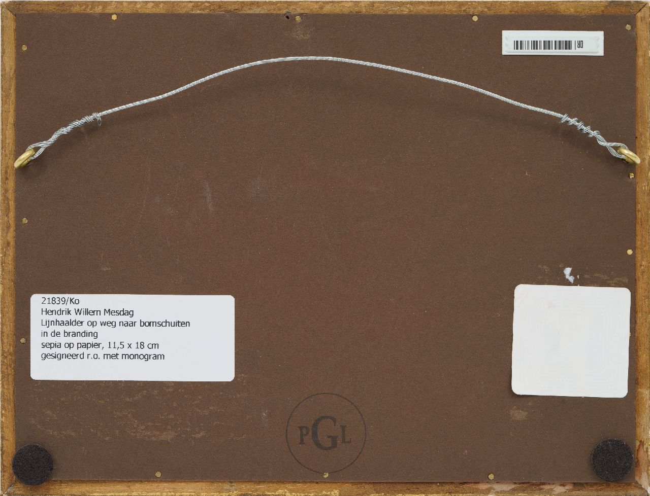H.W. Mesdag war der Marinemaler der Haagse School. Im relativ hohen Alterwählte entschied er sich für die Malerei. Nach einem Aufenthalt in Oosterbeek und Brüssel liess er sich 1869 im Haag nieder, wo ihn das Strand, das Meer und das Leben der Scheveninger Fischer sofort fesselte. In einer schnellen, lockeren Pinselführung und in zahllosen Variationen von braunen, goldenen und grauen Tönen brachte er diese Motive auf die Leinwand. Mesdag hatte eine grosse Produktion, als wolle er alle verlorene Zeit nachholen. Sein Werk war in Frankreich sehr geliebt und wurde öfters im ‘Salon’ in Paris mit einem Preis augezeichnet.