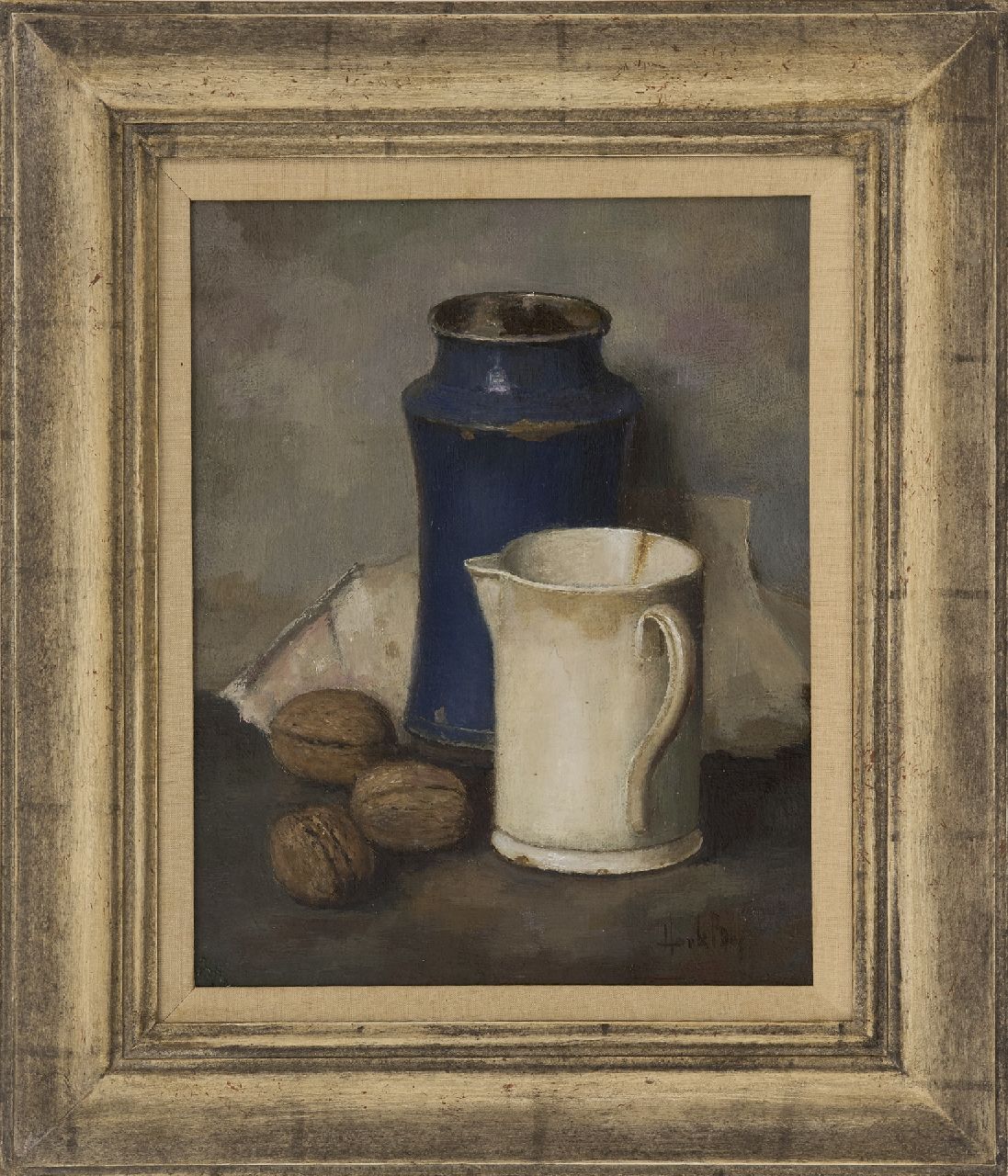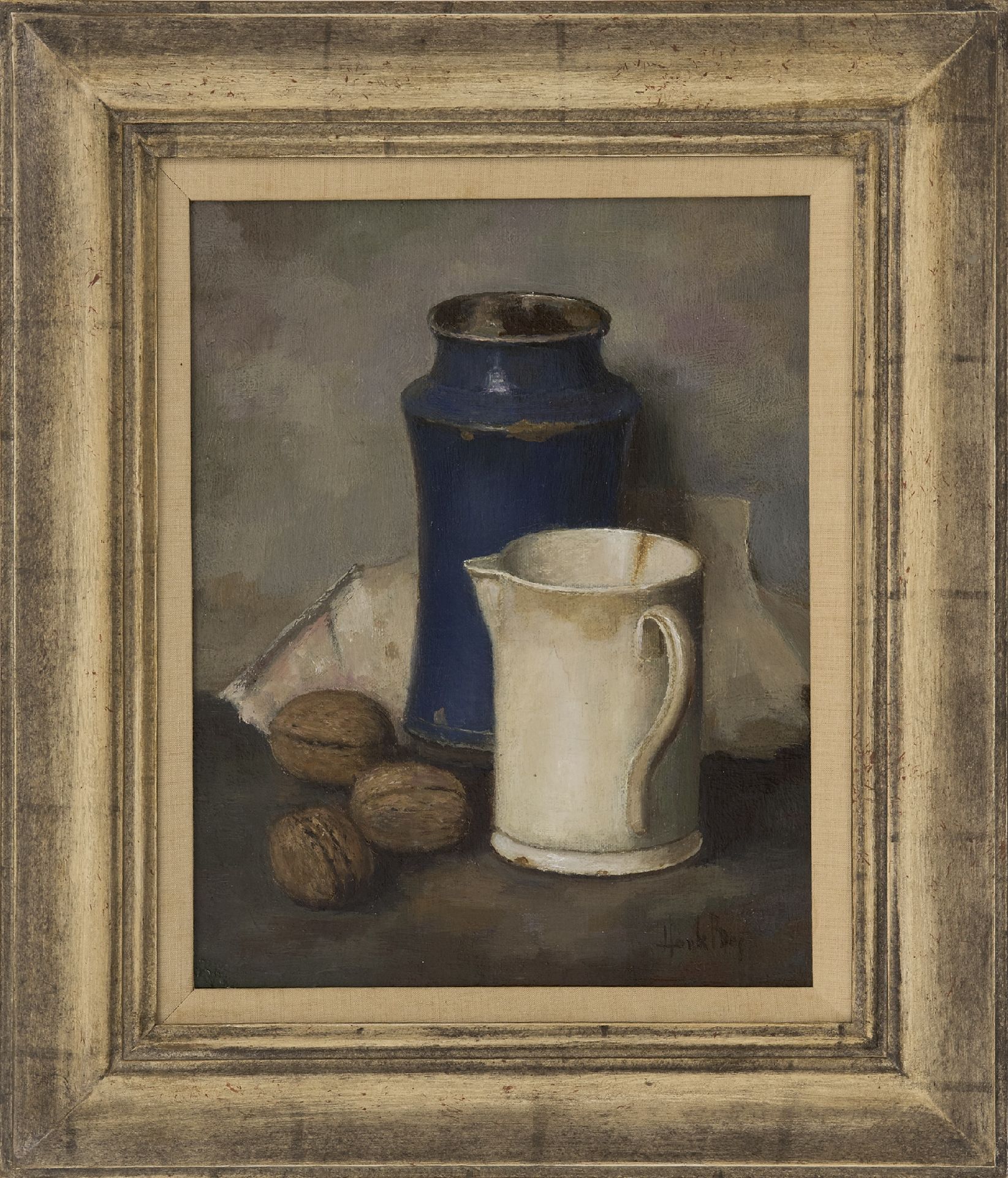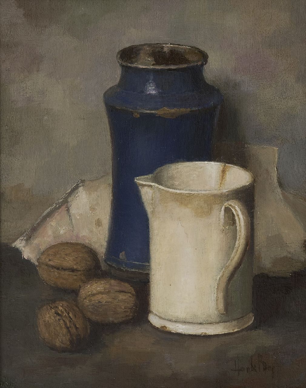 Henk Bos Kunstwerk • Gemälde • zu verkaufen Stilleben mit Tongeschirr und Walnüssen