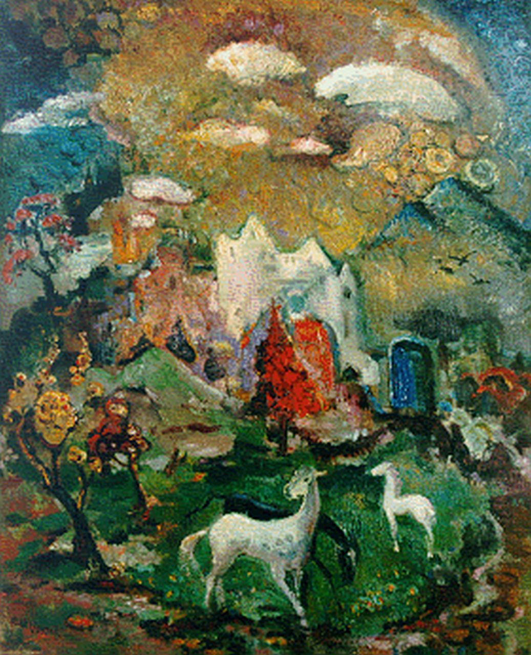 Henk Gorter Kunstwerk • Gemälde • zuvor zu verkaufen Horses in a landscape