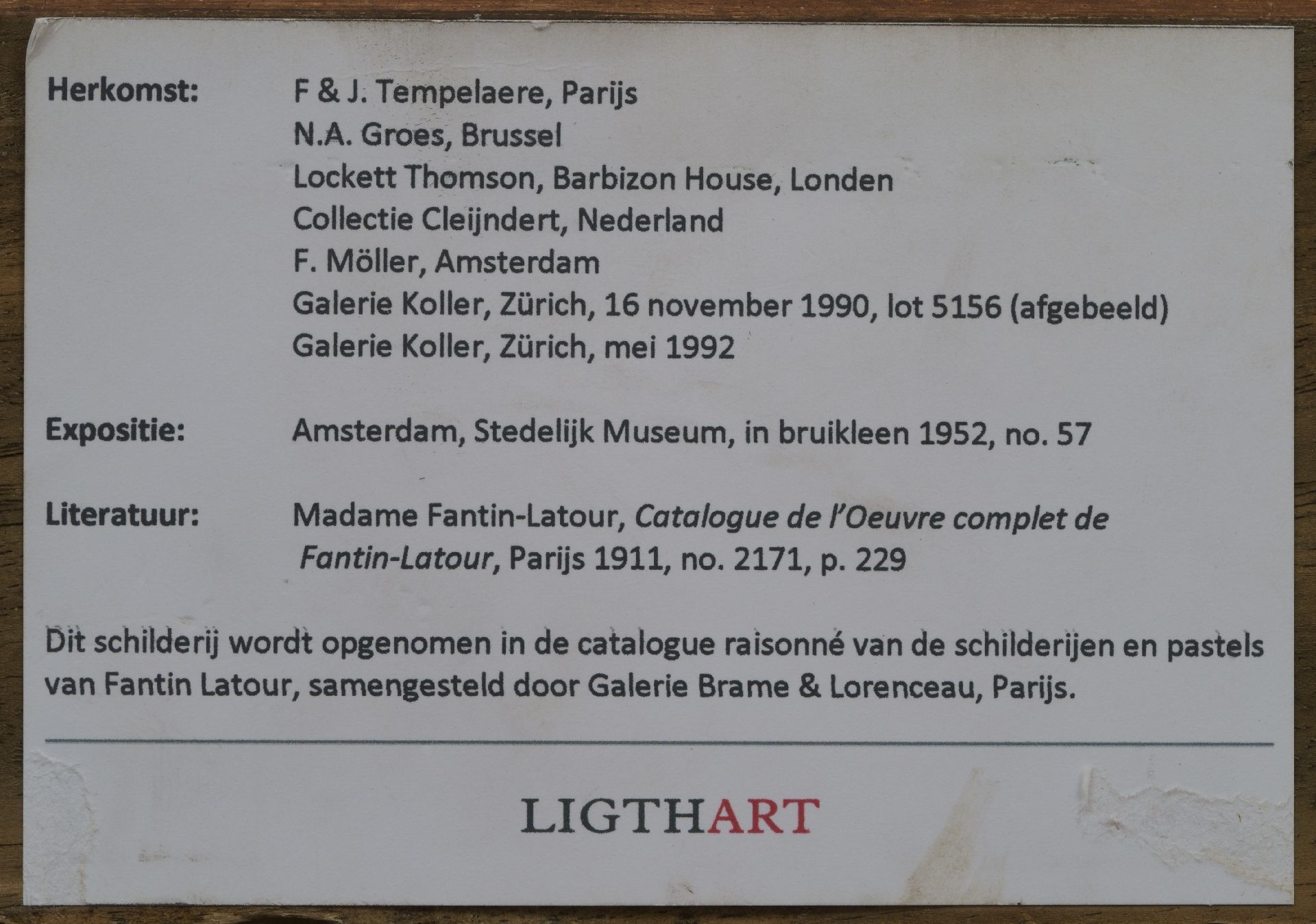 Henri Fantin-Latour war eng befreundet mit der ersten Generation Impressionisten in Paris.Trotzdem war er aus künstlerischem Gesichtspunkt nicht einer von ihnen: verteidigte diese Avant-Garde ihre erneuerende Kunst mit grosser Heftigkeit, Fantin-Latour schuf seinen eigenen, mehr verträumten Stil. Im Gegensatz zu den Impressionisten zeigte er auch wenig Interesse an der Landschaft oder der Stadt: er malte wunderschöne Porträts und war vor allen Dingen wegen seiner Blumenstilleben weitbekannt. Berühmt sind seine Gruppenporträts von zeitgenössischen Malern und Dichtern wie Baudelaire, Manet und Zola. Seine Porträts und Stilleben sind meistens realistisch gemalt. Seine manchmal magischen Farben verwendete er in seinen späteren, entfernt-symbolistischen Phantasievorstellungen die seine Passion für die Musik enthüllten. Hieraus würden viele allgorische Vorstellungen von weibliche Akten entstehen: Badende, Nymphen und Odalisken.