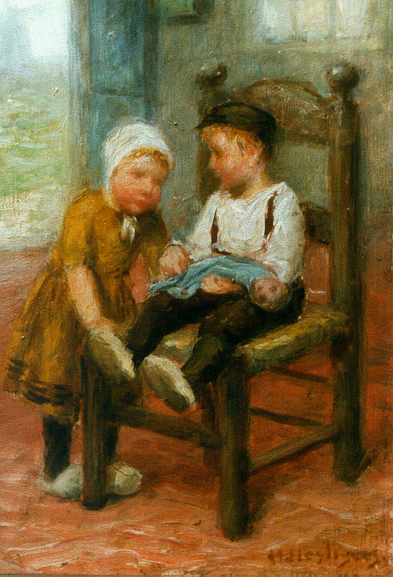 Henri Heijligers Kunstwerk • Gemälde • zuvor zu verkaufen Children playing with a doll